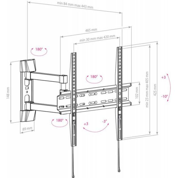 Кронштейн LCD-414, для LED/LCD телевизоров 26"-55", max 35 кг, настенный, наклон +3 -10, поворот 180 градусов, от стены 84-443 мм, max VESA 400x400 мм