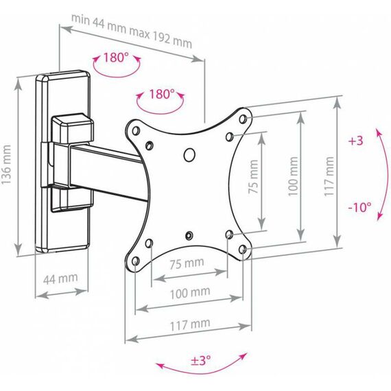 | Поддержка крепления VESA | 100x100, 75x75 |