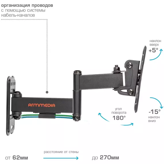 Кронштейн для телевизора ARM Media MARS-6 черный 10"-32" макс.25кг настенный поворотно-выдвижной и наклонный [90716]