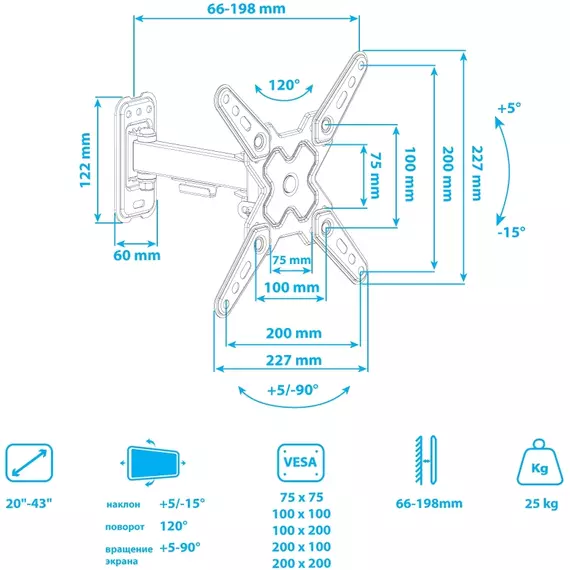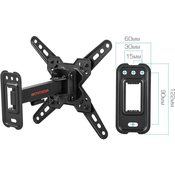 Кронштейн для телевизора ARM Media MARS-7 черный 20"-43" макс.25кг настенный поворотно-выдвижной и наклонный [90717]