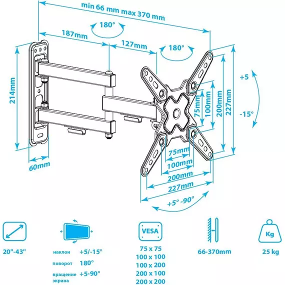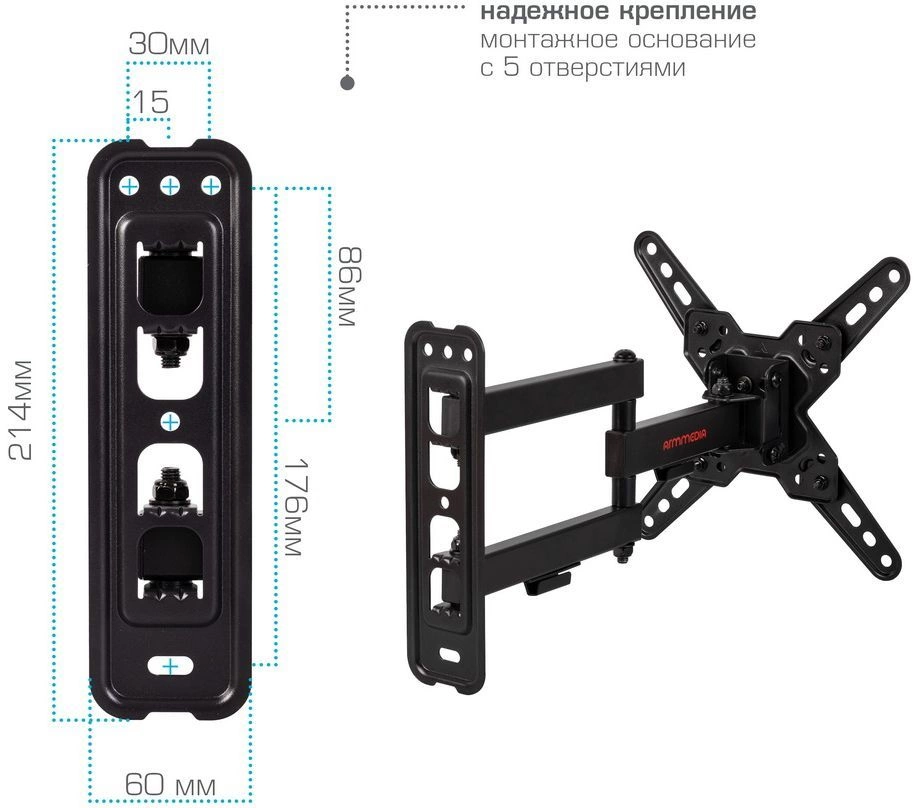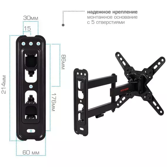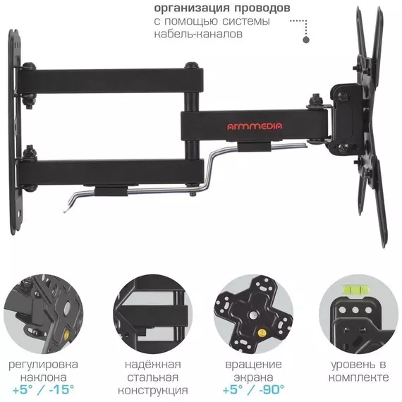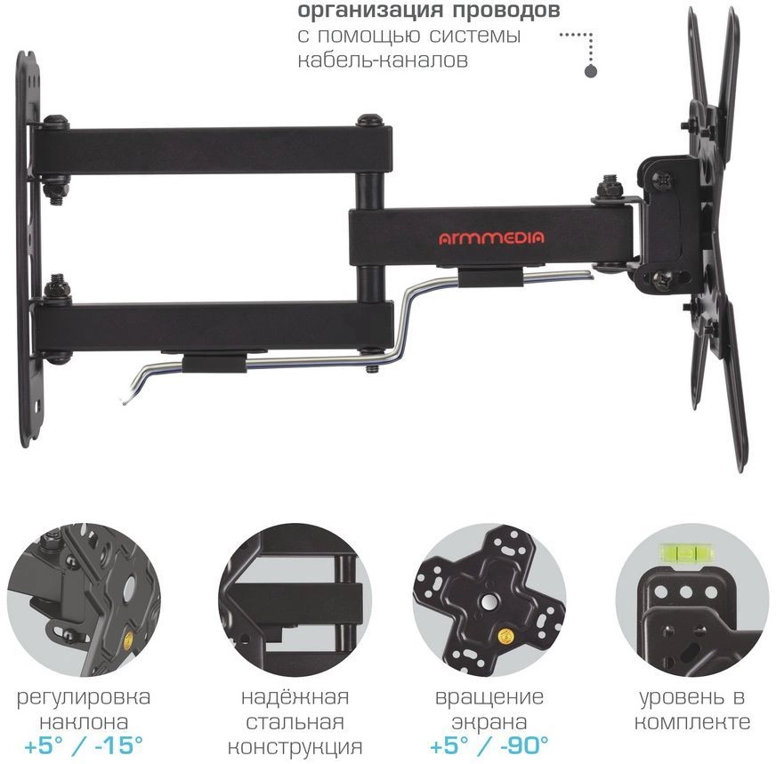 Кронштейн для телевизора ARM Media MARS-8 черный 20"-43" макс.25кг настенный поворотно-выдвижной и наклонный [90718]