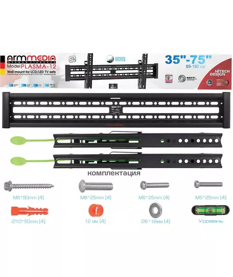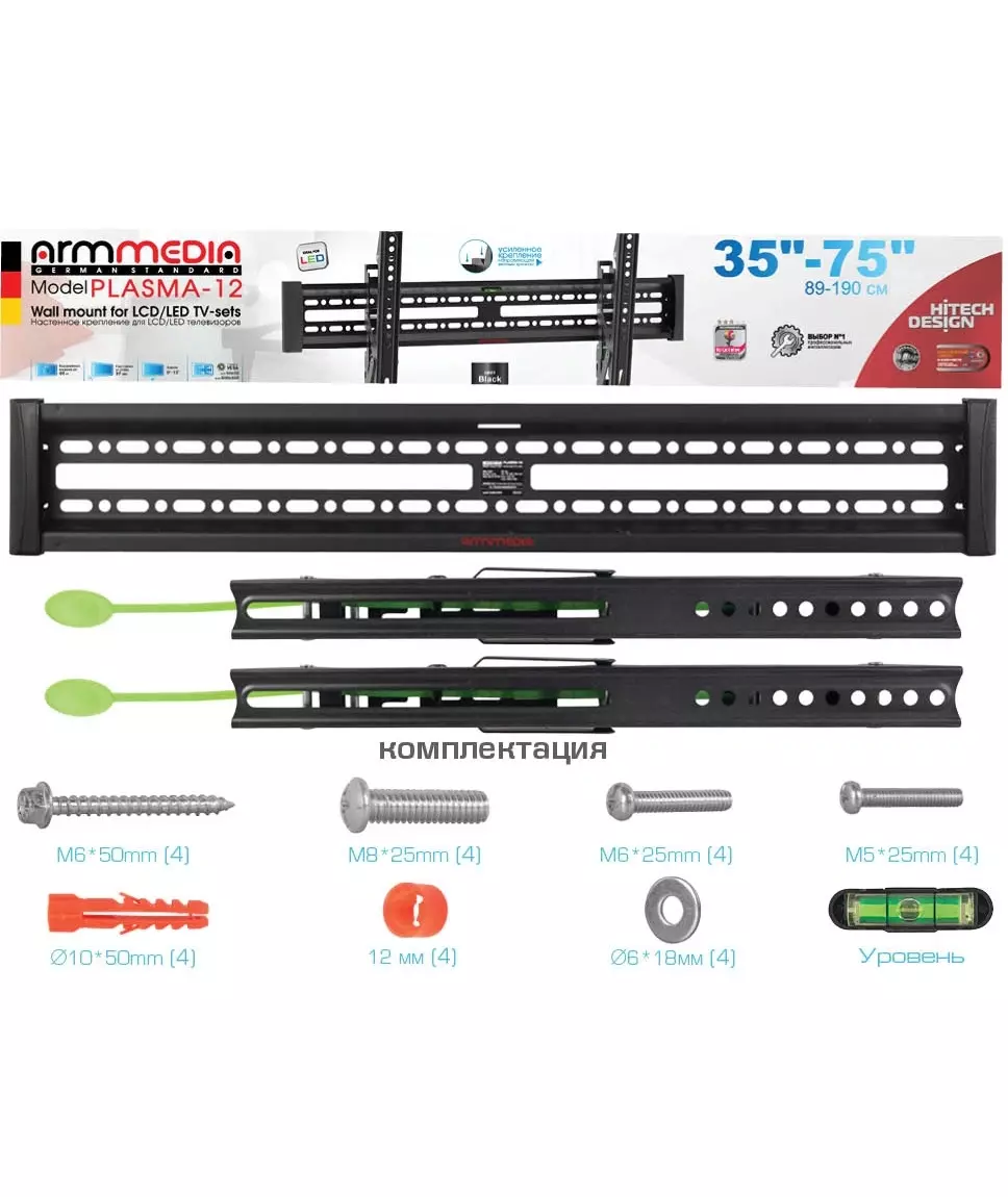 Кронштейн для телевизора ARM Media PLASMA-12 черный 35"-75" макс.60кг настенный наклон [90706]