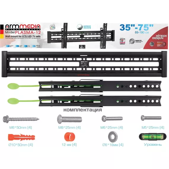 | Комплектация | Кронштейн для телевизора, комплект ключей и крепежа для установки ТВ, навесной уровень, подробная инструкция на русском языке |
