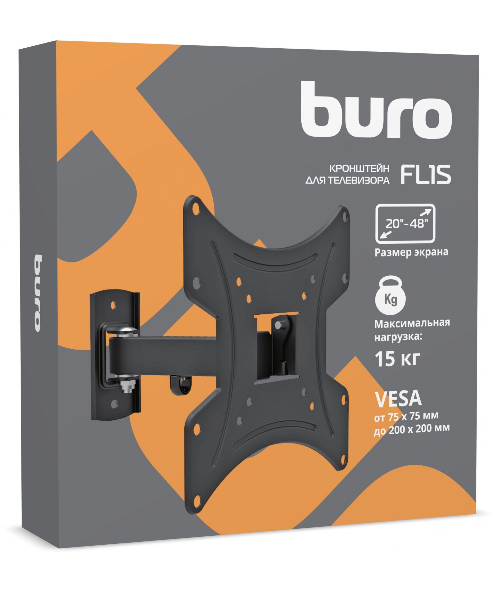 Кронштейн для телевизора BURO FL1S черный 20"-48" макс.15кг настенный поворот и наклон [BM15A72TS2]