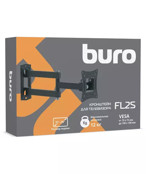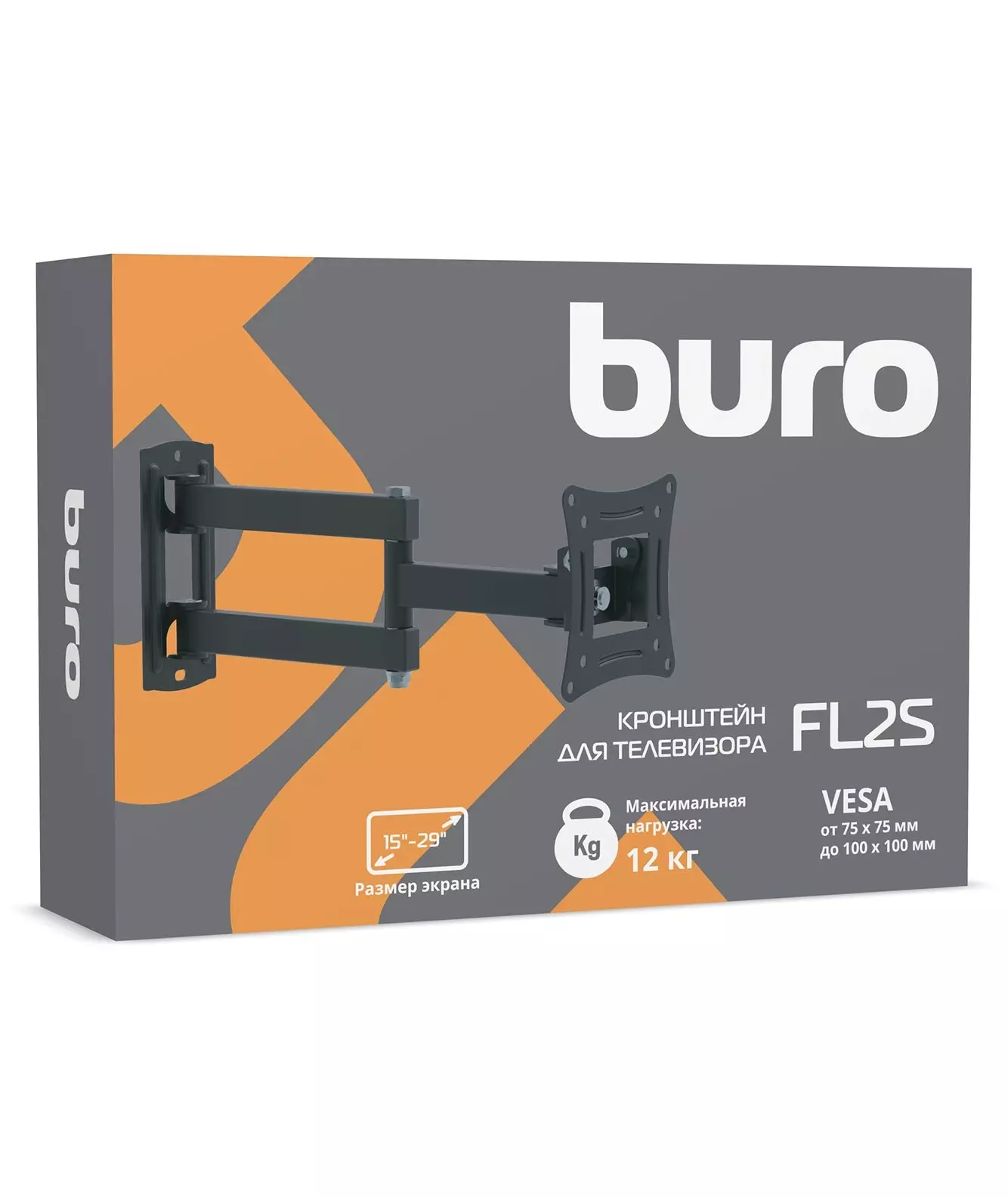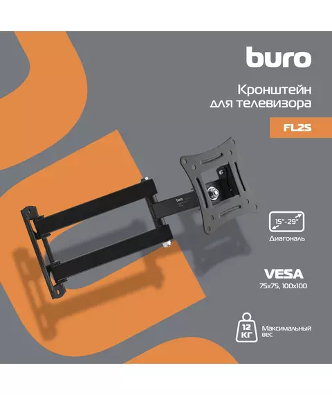 Кронштейн для телевизора BURO FL2S черный 15"-29" макс.12кг настенный поворотно-выдвижной и наклонный [BM13A71TS3]