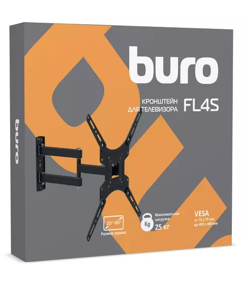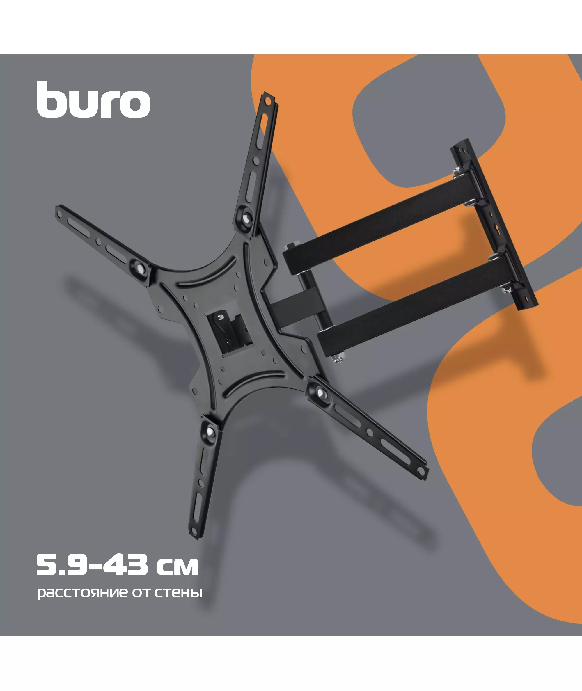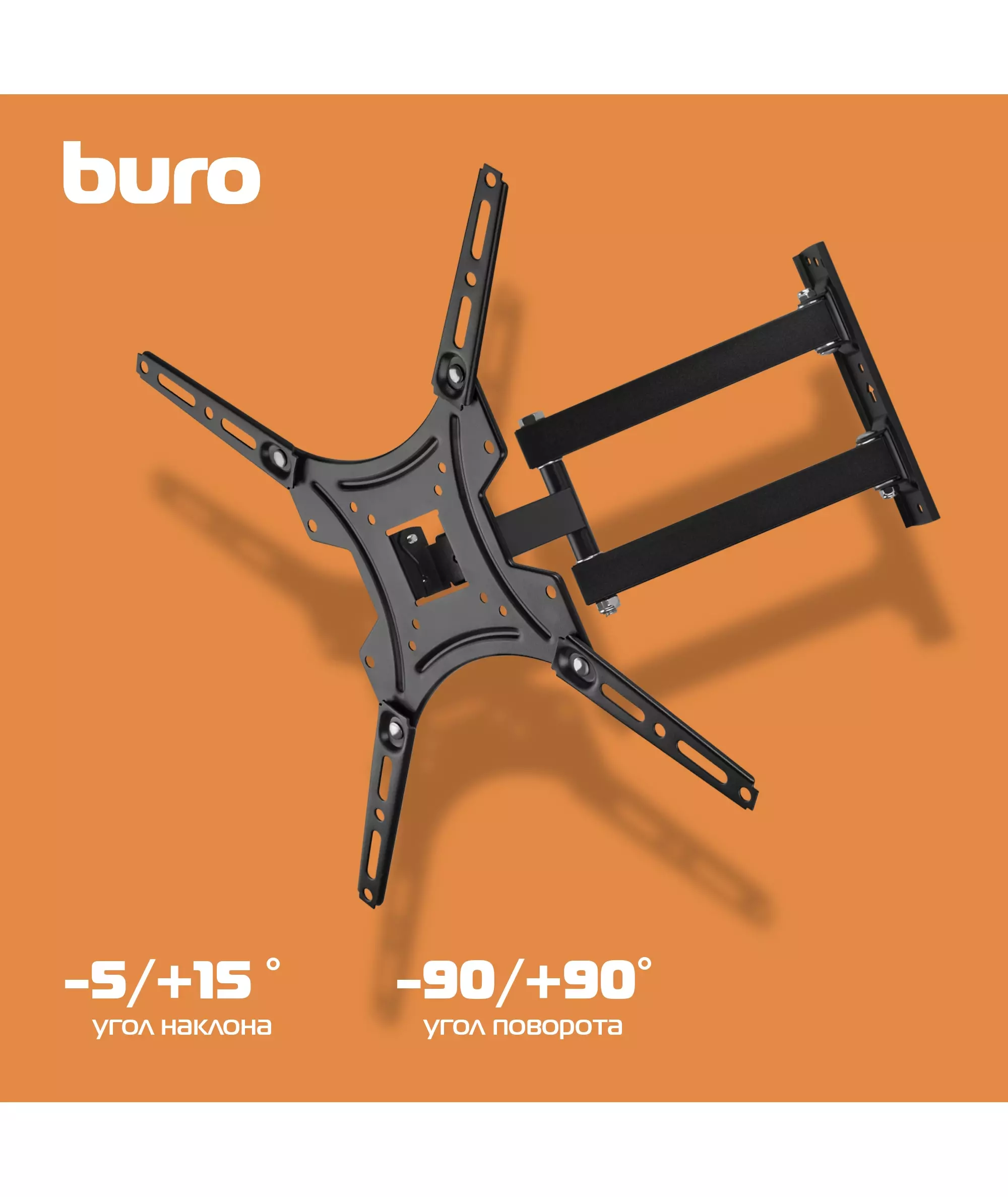 Кронштейн для телевизора BURO FL4S черный 20"-65" макс.25кг настенный поворотно-выдвижной и наклонный [BM25A74TS3]