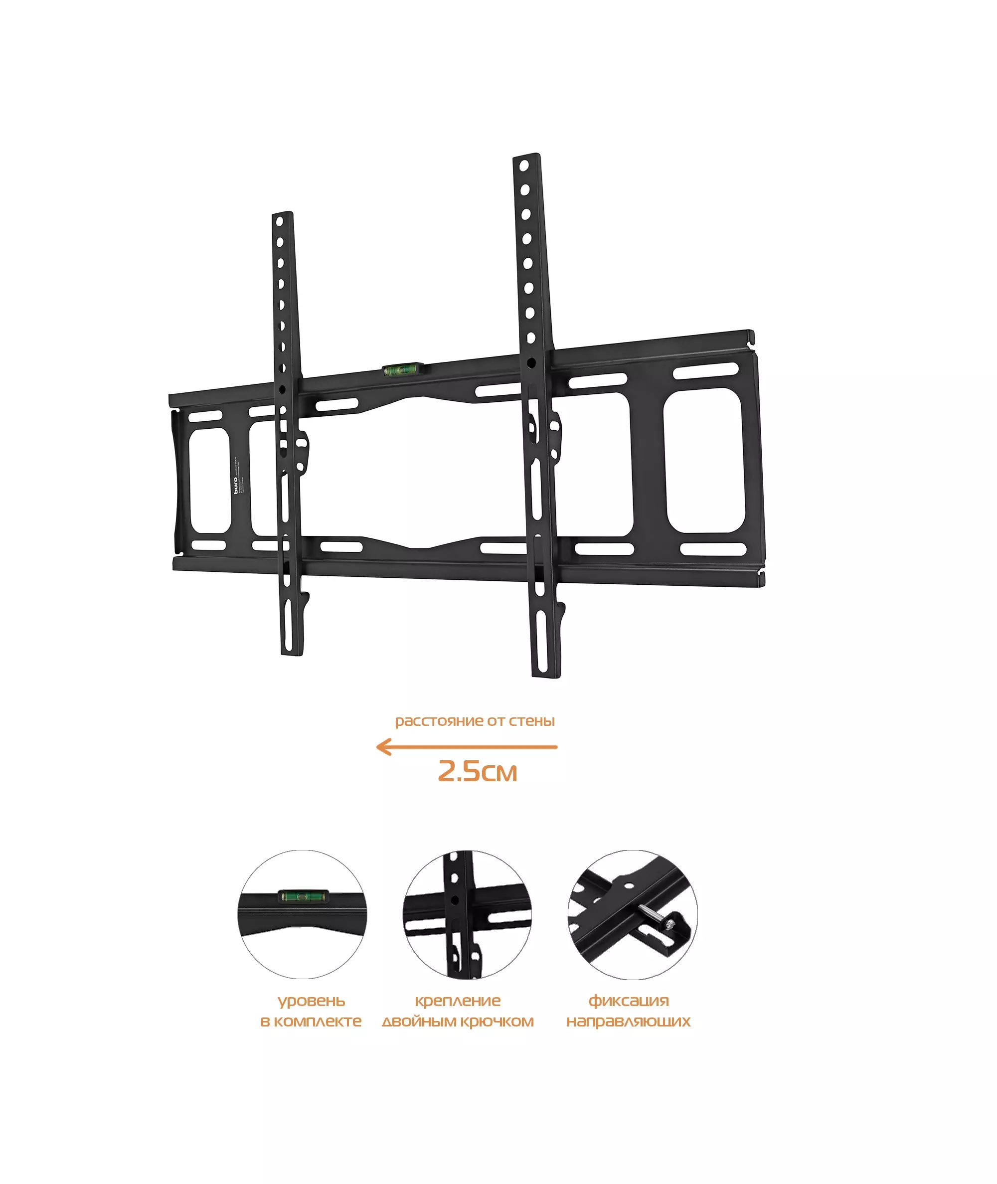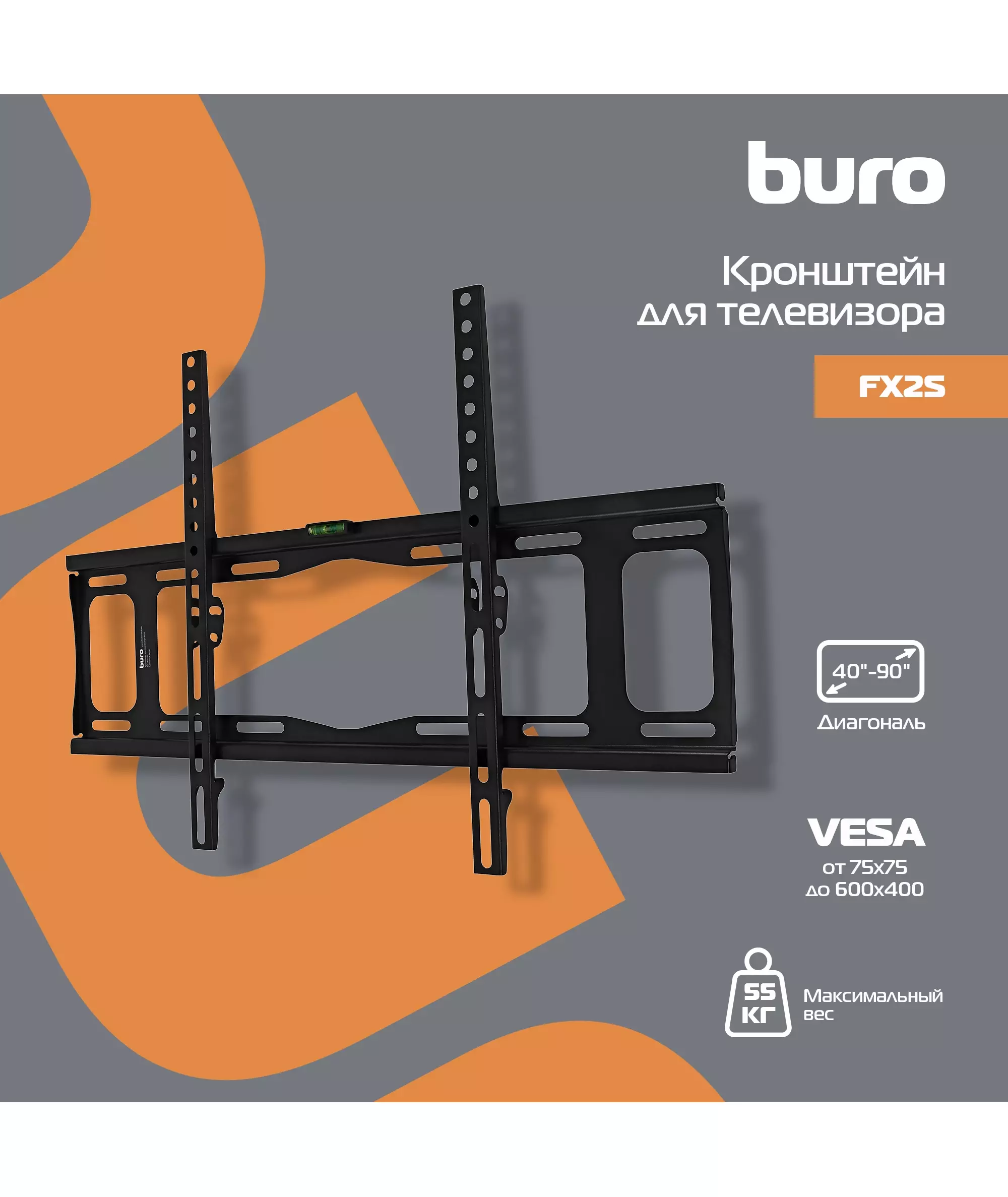 Кронштейн для телевизора BURO FX2S черный 40"-90" макс.55кг настенный фиксированный [BM55A26FF0]