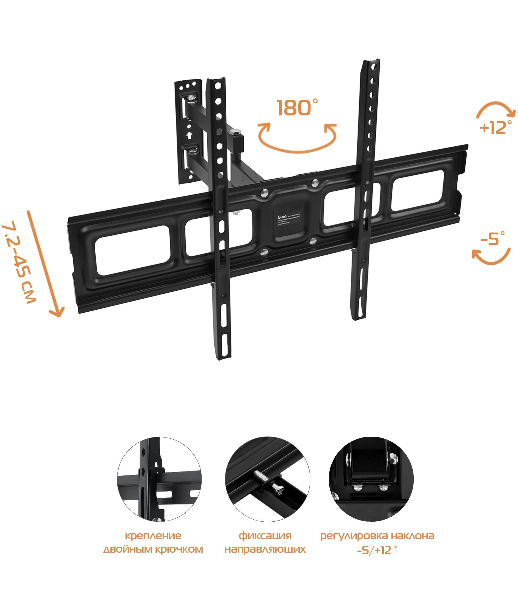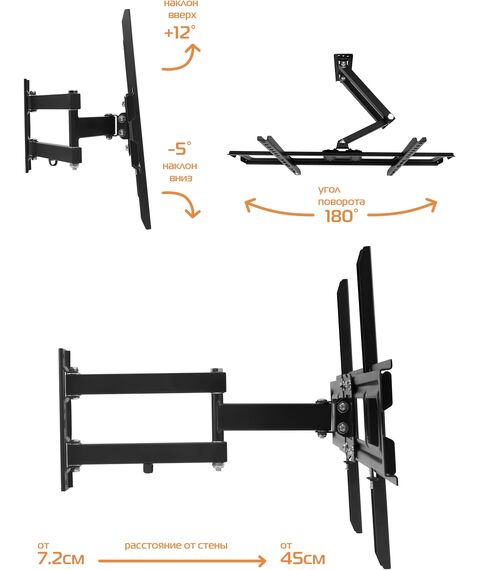 Кронштейн для телевизора BURO MF2 черный 32"-70" макс.35кг настенный поворотно-выдвижной и наклонный [BM-EMVA56F335BK]
