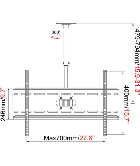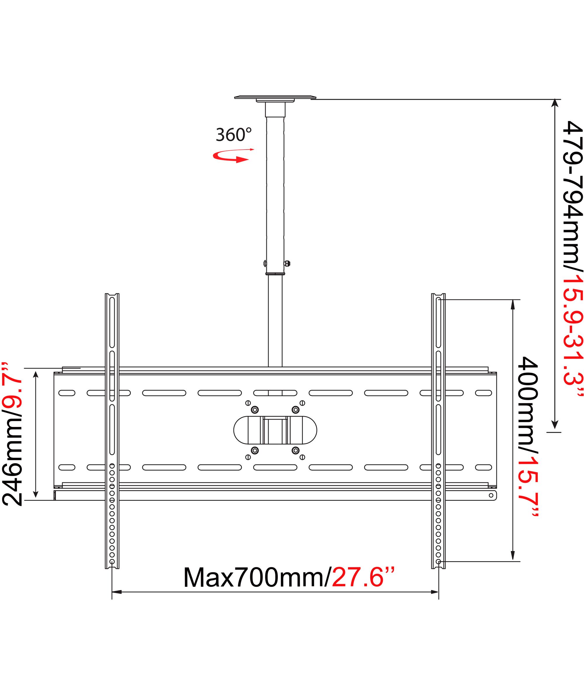 Кронштейн для телевизора Cactus CS-CP04-R черный 37"-70" макс.81.6кг потолочный поворот и наклон