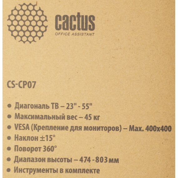 Кронштейн для телевизора Cactus CS-CP07 черный 23"-55" макс.45кг потолочный поворот и наклон