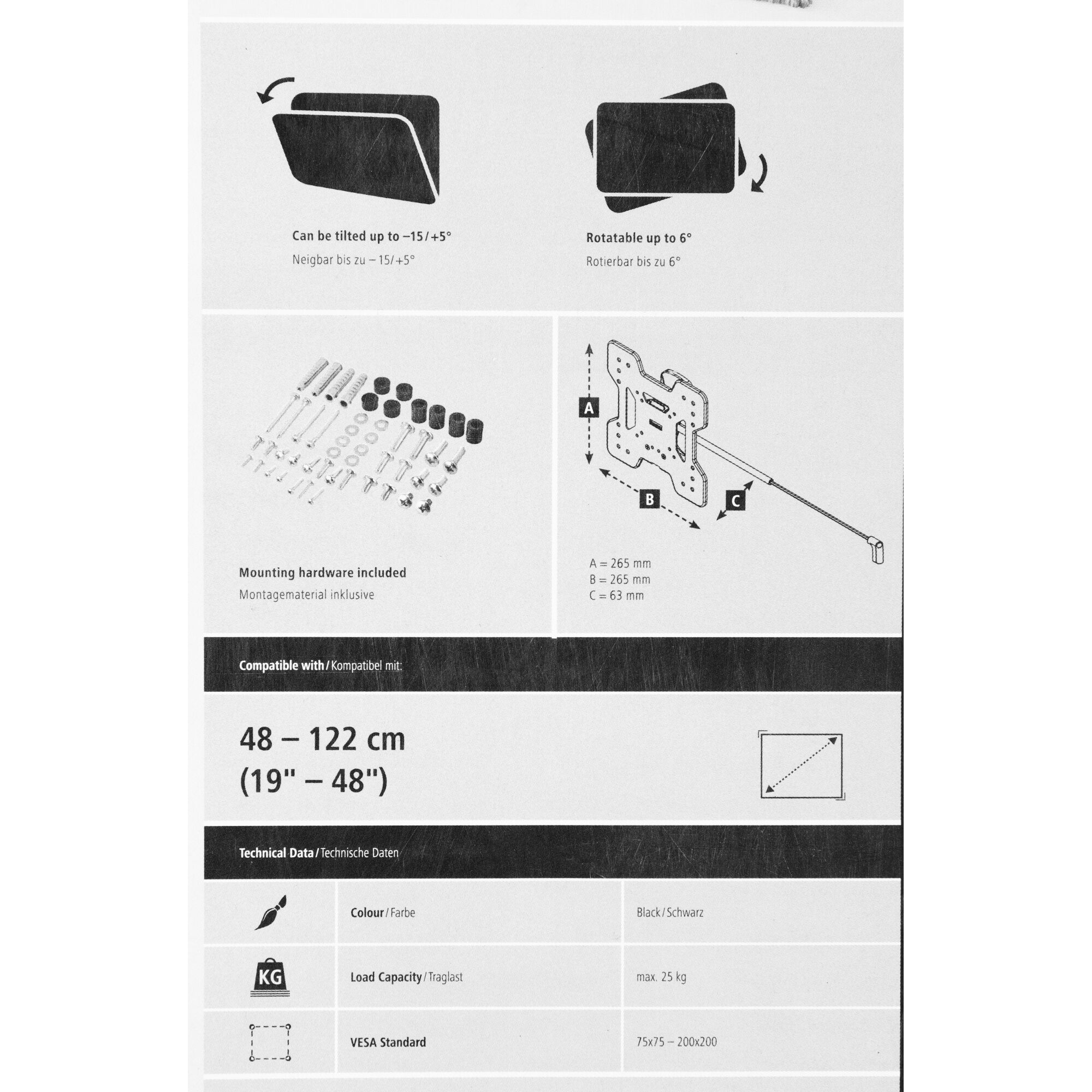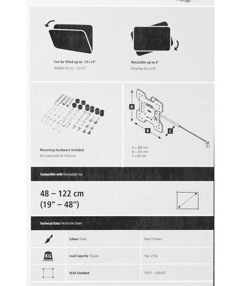 | Подходит для телевизоров c диагональю | 19", 22", 24", 26", 28", 32", 37", 39", 40", 42", 43", 46", 48" |