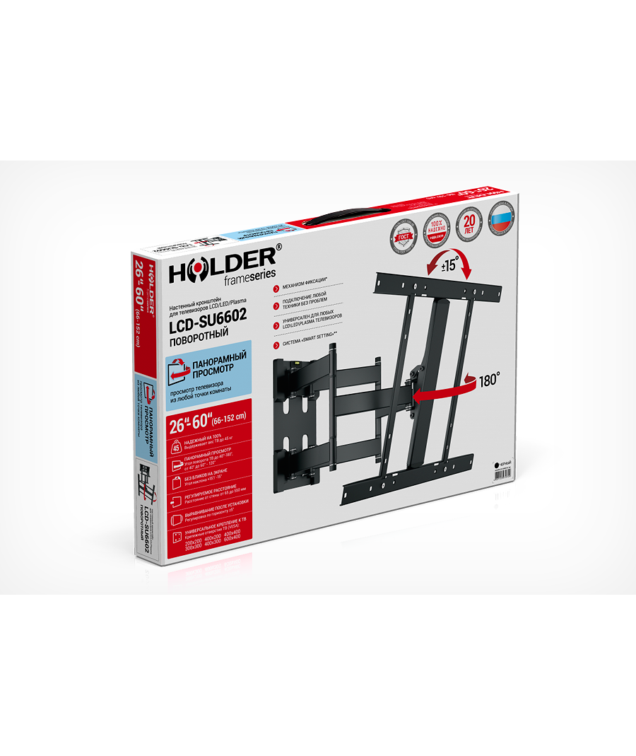 Кронштейн для телевизора Holder LCD-SU6602-B 26"-60", до 45кг, настенный поворот, черный