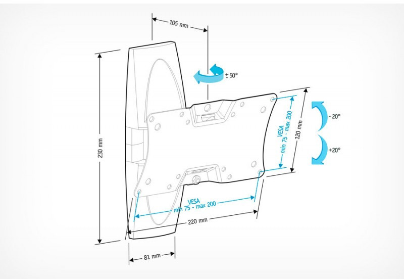 - Угол наклона и поворота ТВ меняется движением одной руки