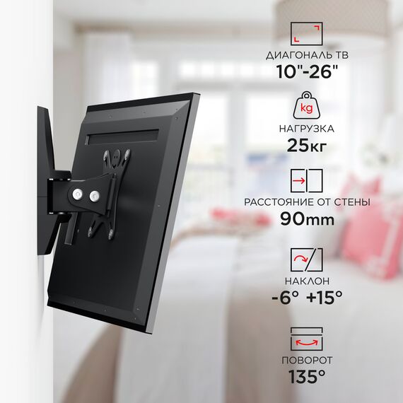 | Подходит для телевизоров c диагональю | 15", 19", 22", 24", 26" |