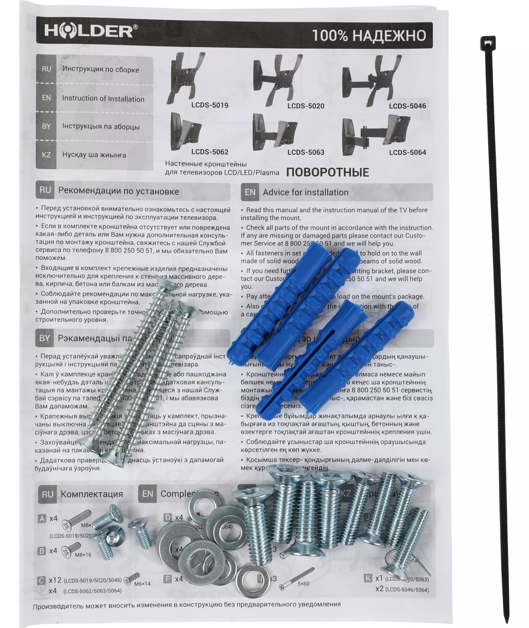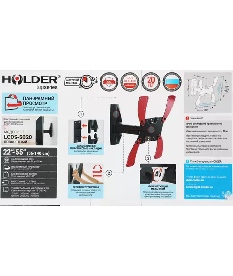 Кронштейн Holder LCDS-5020 19-40", макс 300*300, поворот 100°, от стены до 260мм, 1 колено
