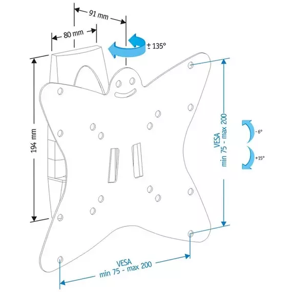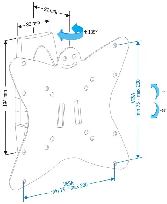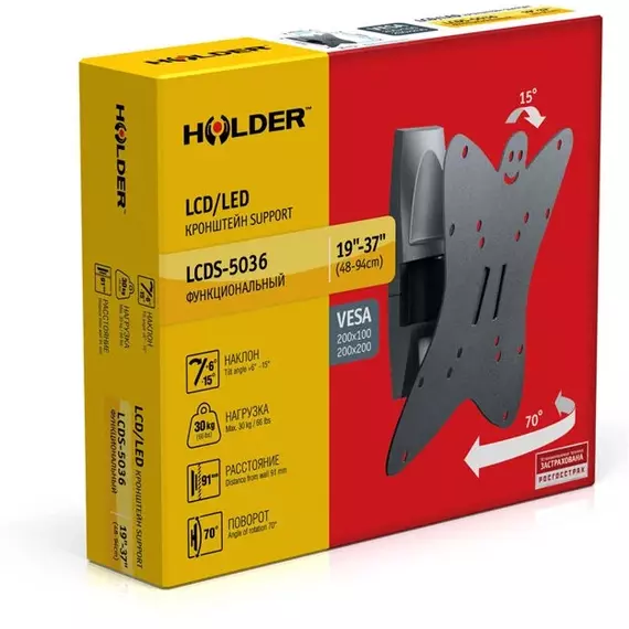 Кронштейн Holder LCDS-5036 20-37", 200*200, наклон +6 -15°, от стены 91мм