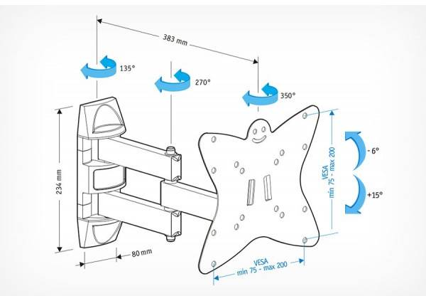 - Крепежные отверстия: 75х75, 100х100, 200х100, 200х200 мм