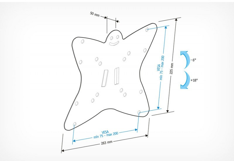 - Крепежные отверстия 75х75, 100х100, 200х100, 200х200 мм