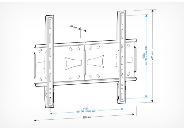 Кронштейн Holder LCDS-5070 Диагональ 37–55", нагрузка до 45 кг, стандарт крепления Vesa 200х200, 200х300, 300х300, 400х200, 400х400, расстояние от стены 20 мм