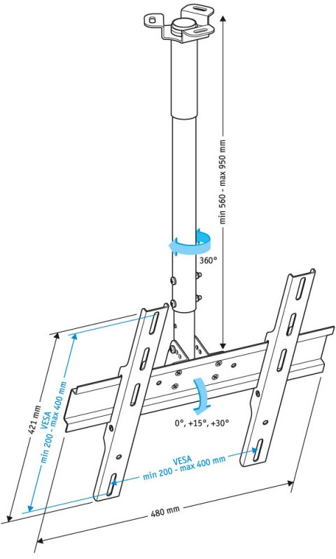 Потолочный кронштейн для ТВ Holder PR-101-B 32 – 65", 200х200, 200х300, 300х300, 400х400 мм