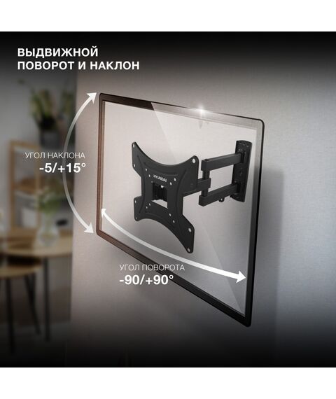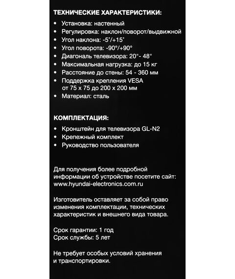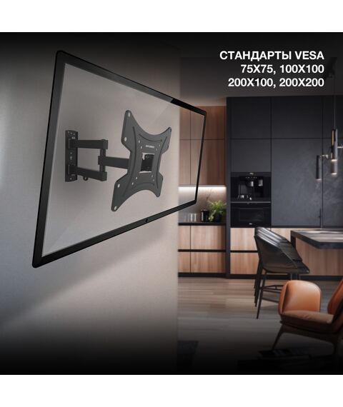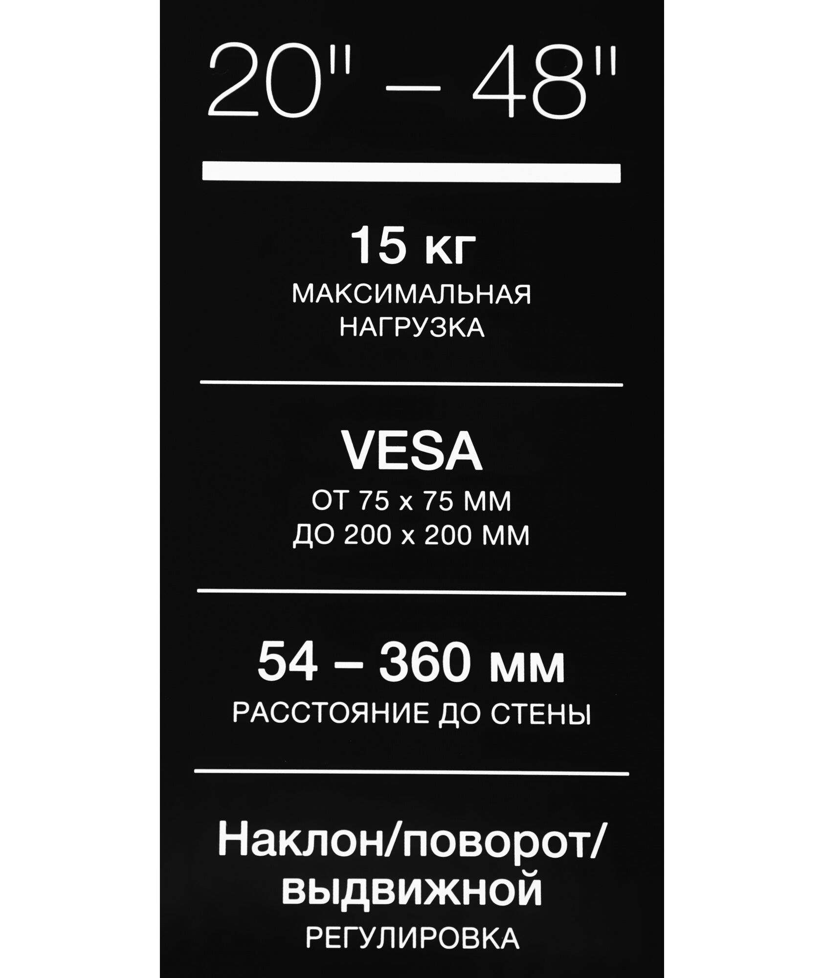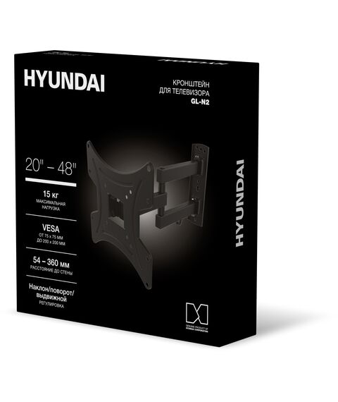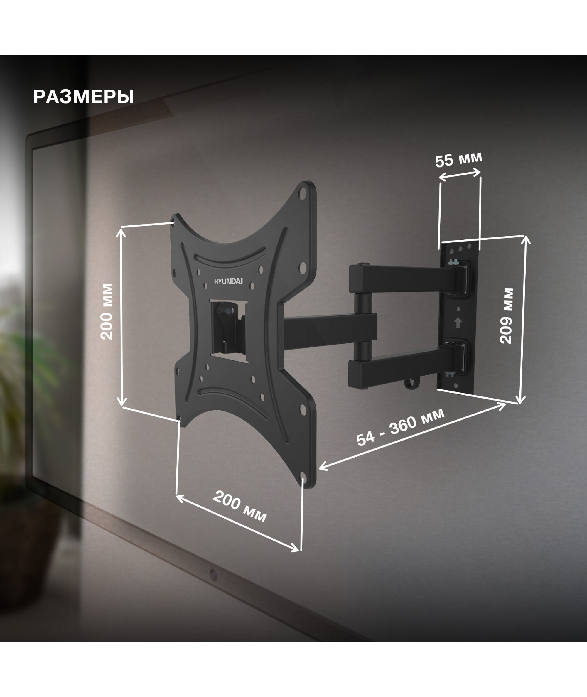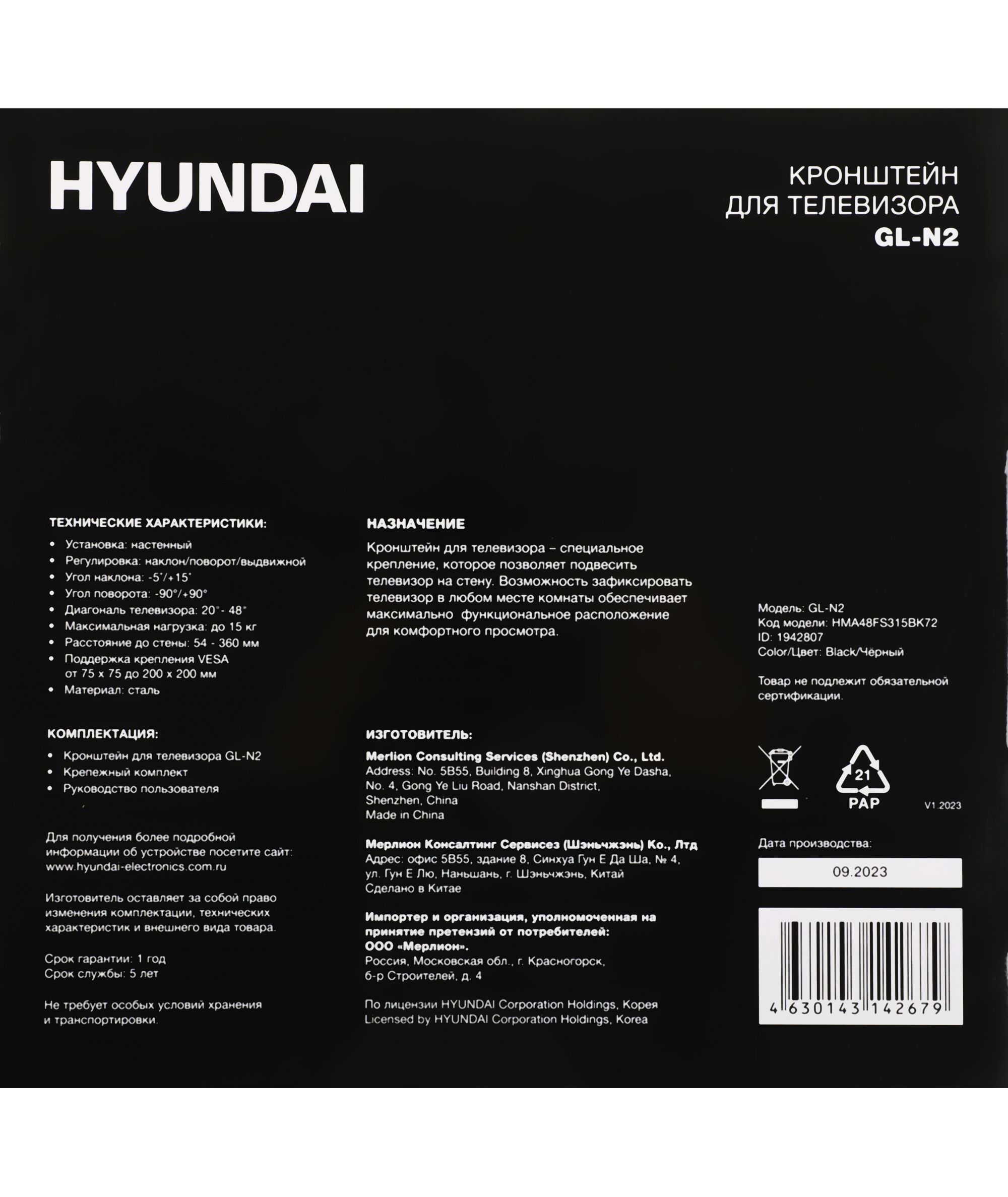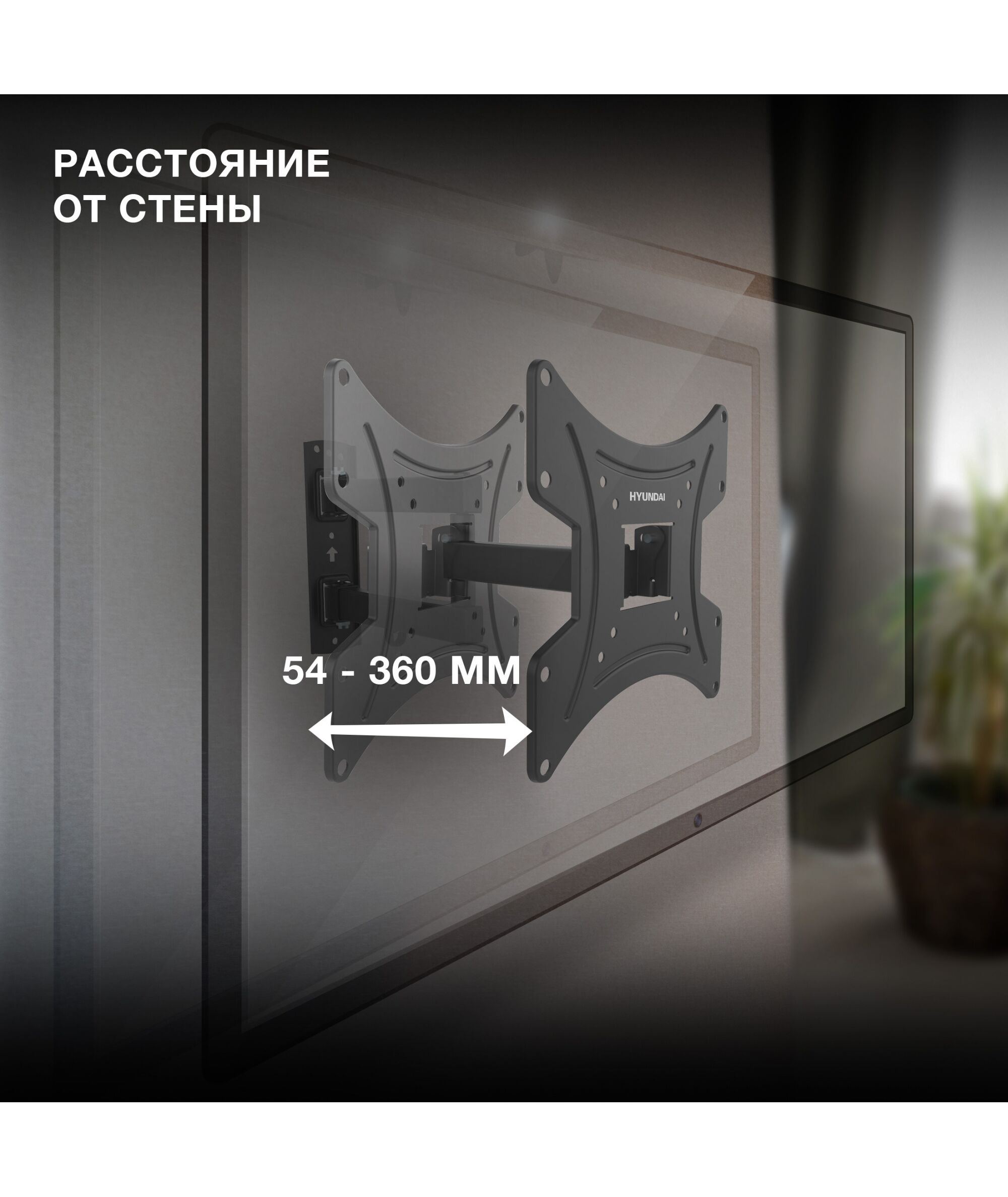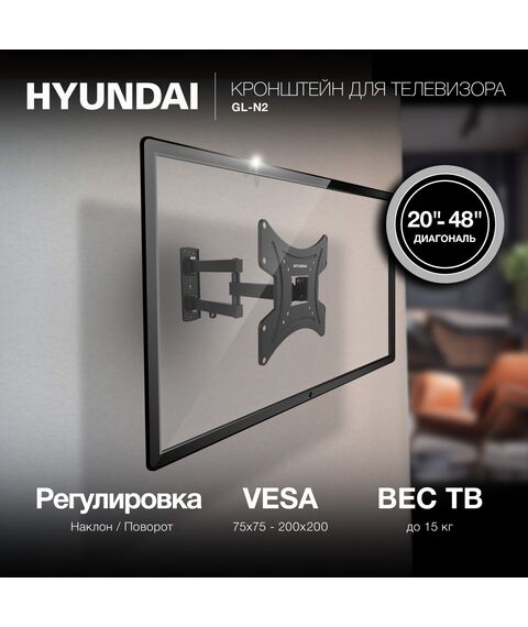 Кронштейн для телевизора Hyundai GL-N2 черный 20"-48" макс.15кг настенный поворотно-выдвижной и наклонный [HMA48FS315BK72]
