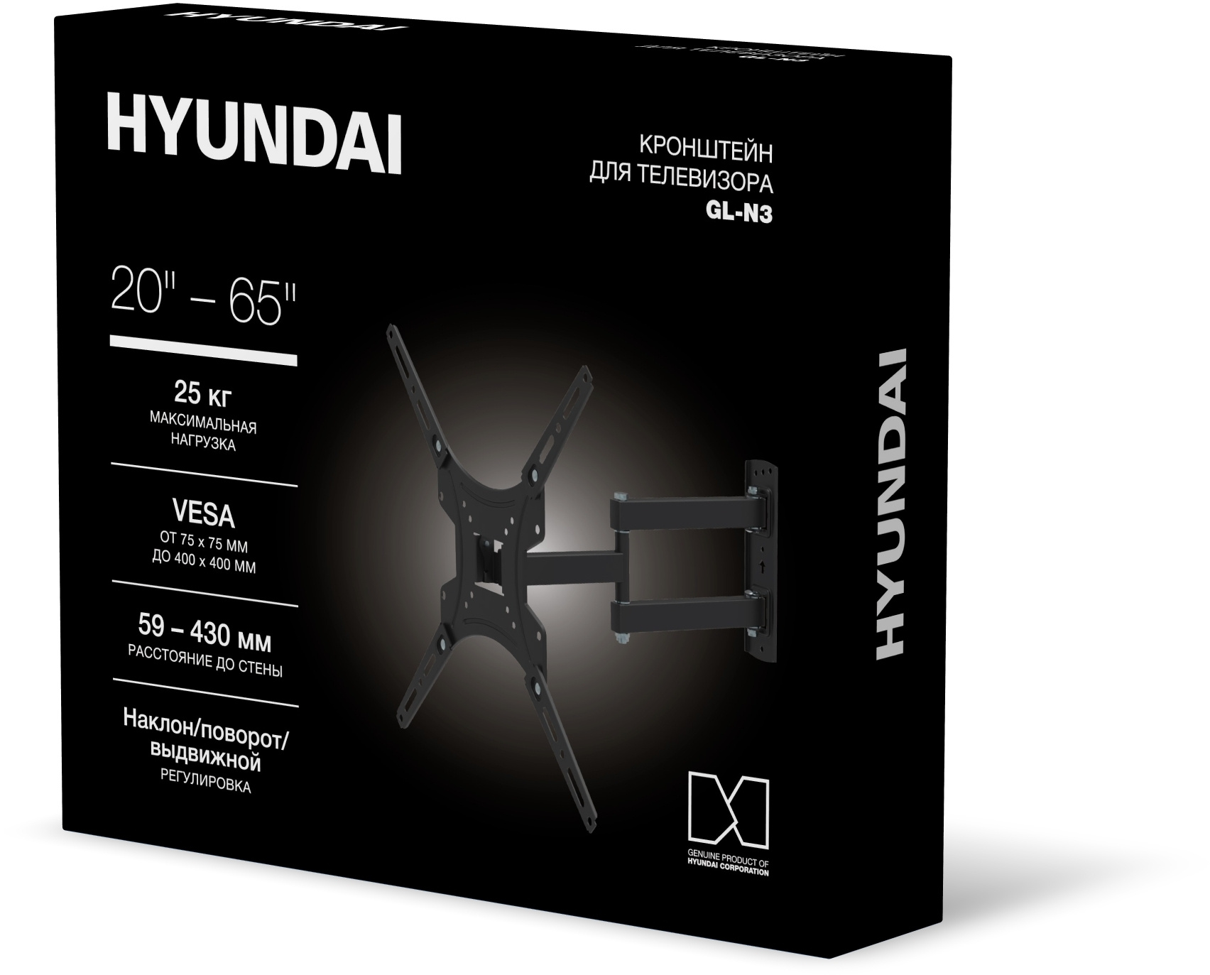 Кронштейн для телевизора Hyundai GL-N3 черный 20"-65" макс.25кг настенный поворотно-выдвижной и наклонный [HMA65FS325BK74]