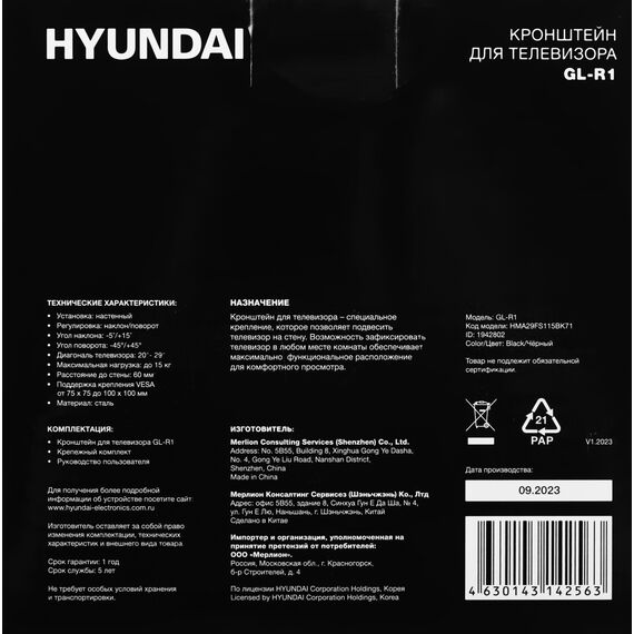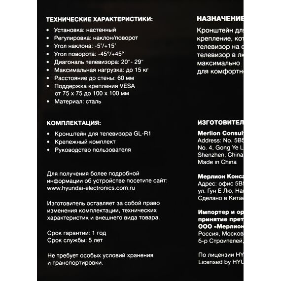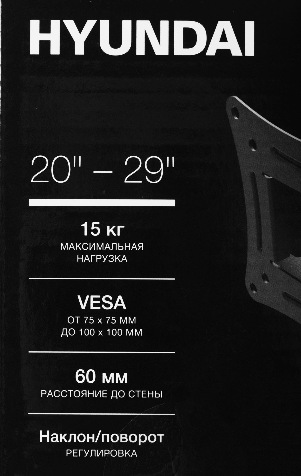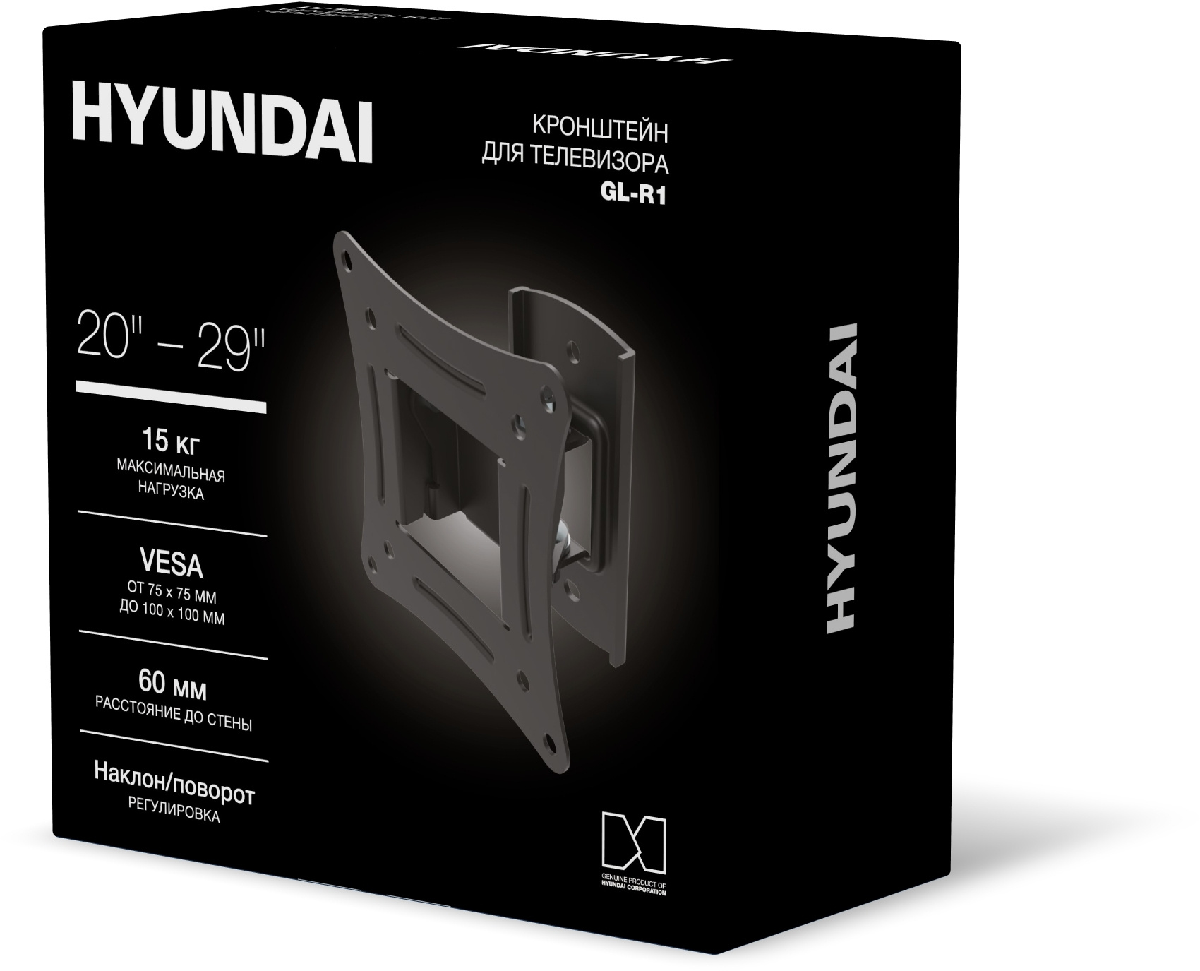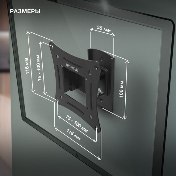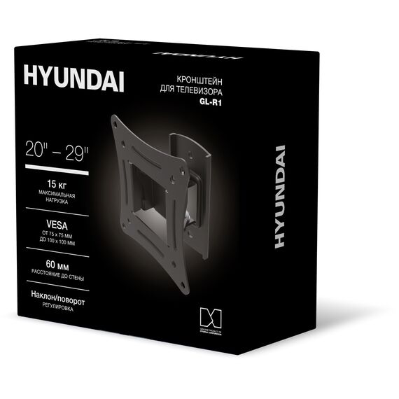 Кронштейн для телевизора Hyundai GL-R1 черный 20"-29" макс.15кг настенный поворот и наклон [HMA29FS115BK71]