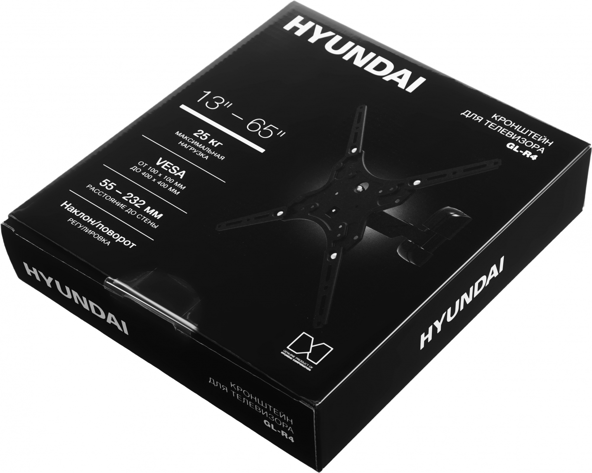 Кронштейн для телевизора Hyundai GL-R4 черный 13"-65" макс.25кг настенный поворот и наклон [HMA65FS225BK14]