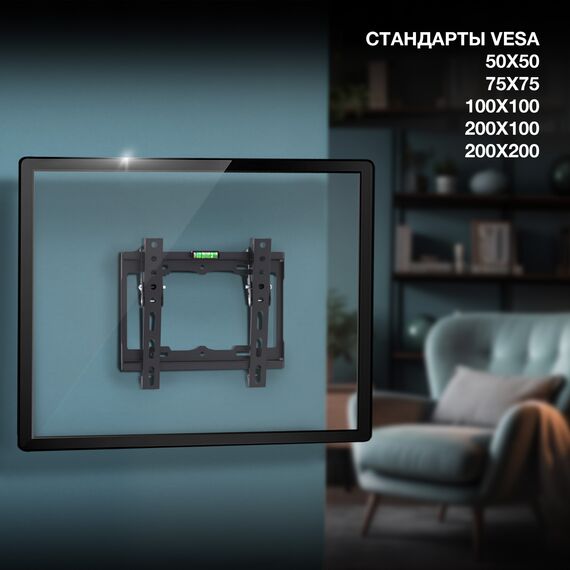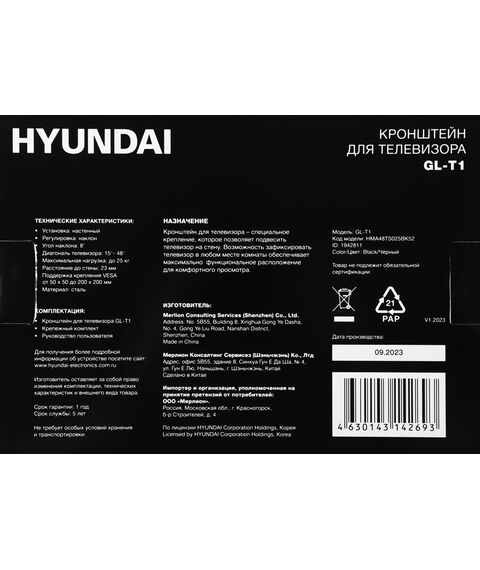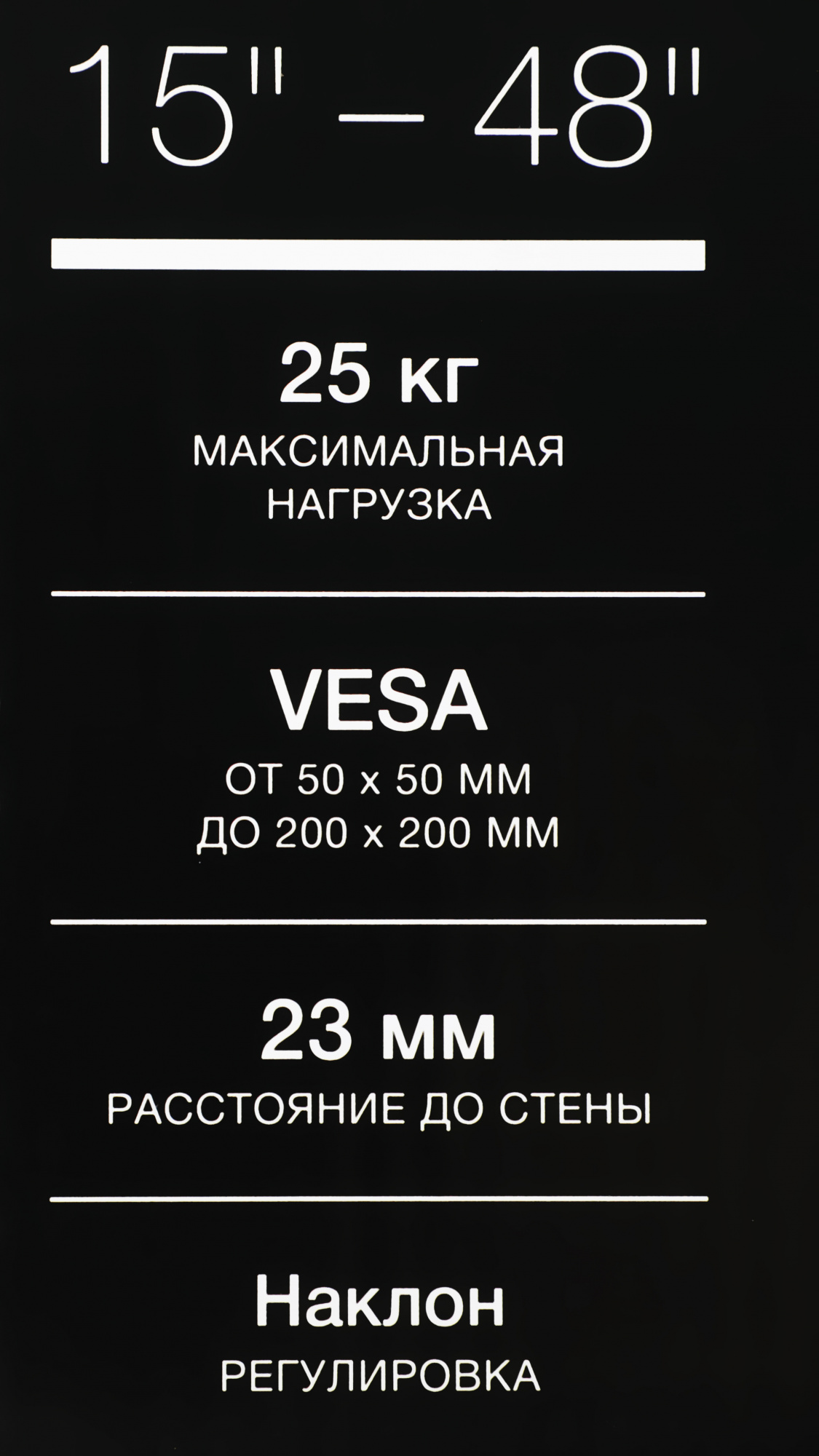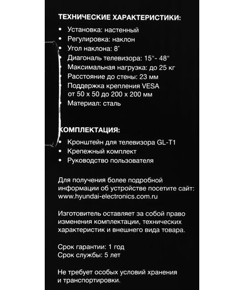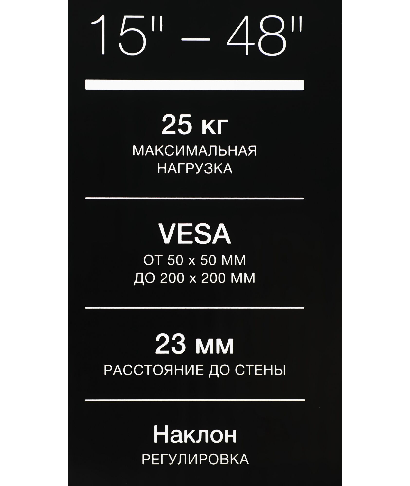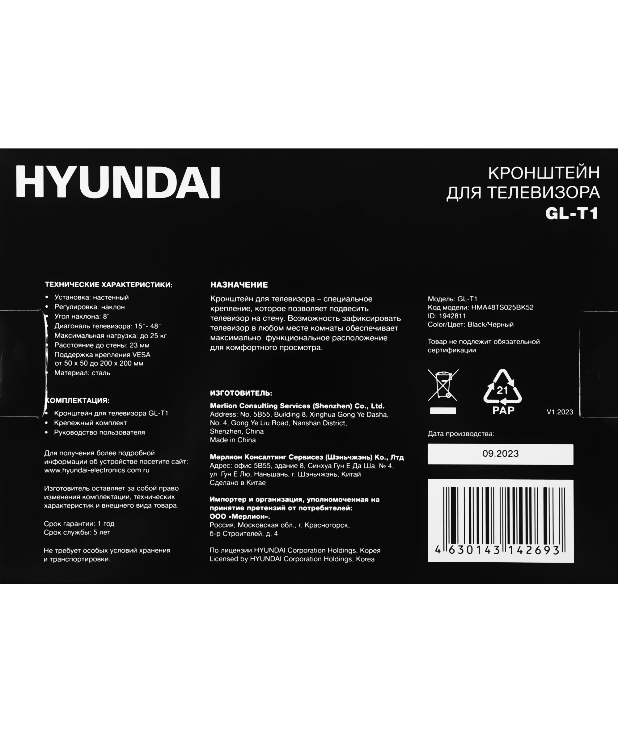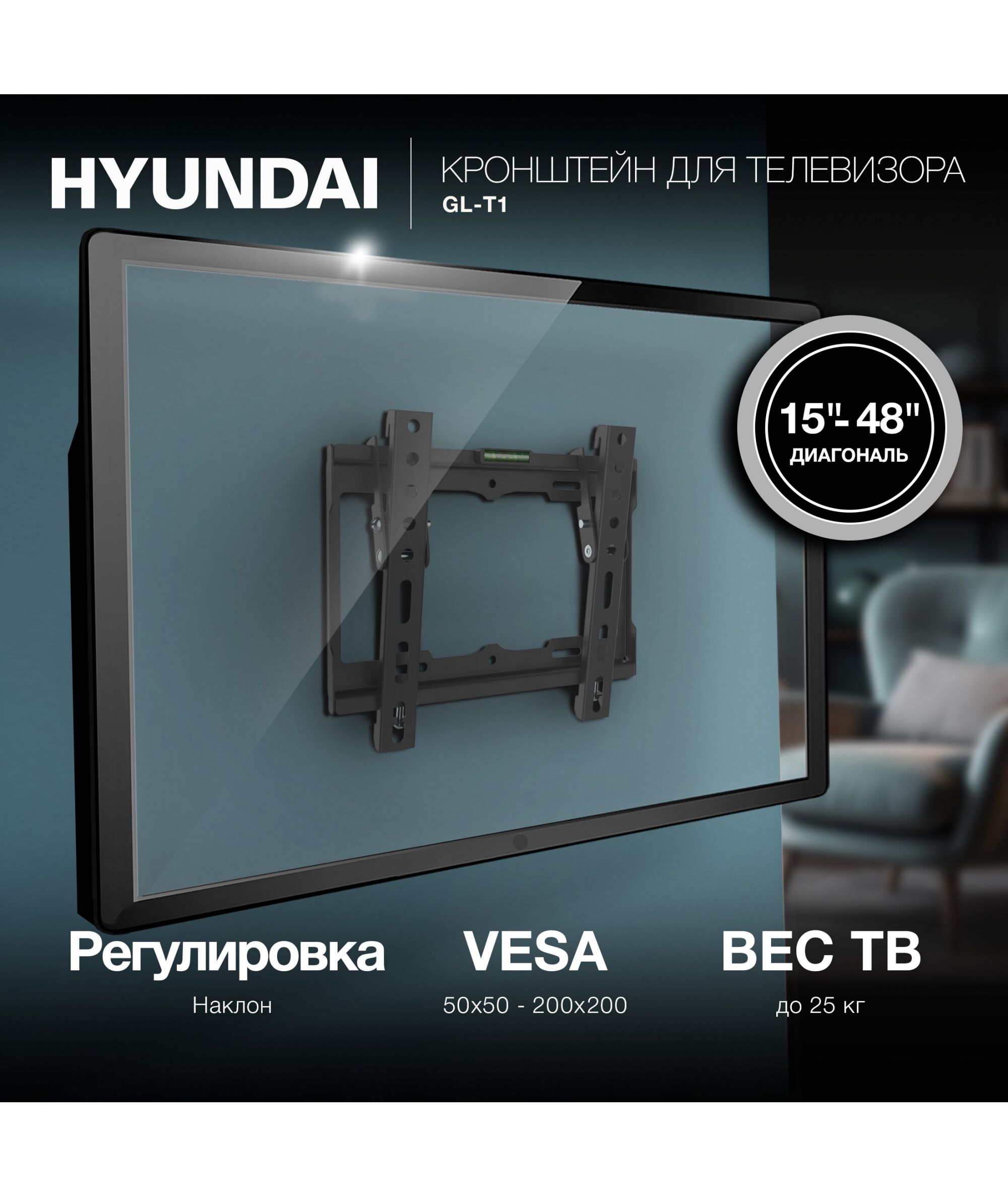 Кронштейн для телевизора Hyundai GL-T1 черный 15"-48" макс.25кг настенный наклон [HMA48TS025BK52]