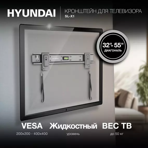 Кронштейн для телевизора Hyundai SL-X1 черный 32"-55" макс.50кг настенный фиксированный [HMS55XF050BK24]