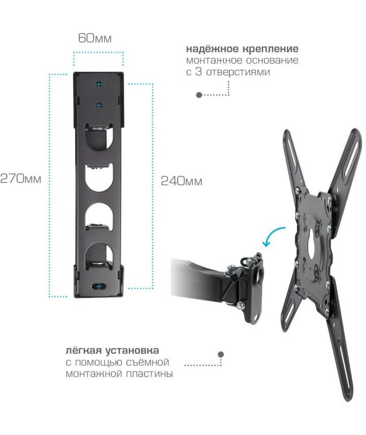 - Кронштейн подходит для большинства телевизоров популярных брендов, таких как Samsung, LG, Sony, Panasonic, Sharp, Toshiba, KIVI, Xiaomi Mi, SUPRA, Hyundai, Erisson, Horizont, JVC, Thomson, HAIER, BBK, Витязь, Веко, BQ, OZON, SkyLine, Pioneer, Philips, Rolsen, Harper, Hisense, Hitachi, Polarline, Prestigio и других