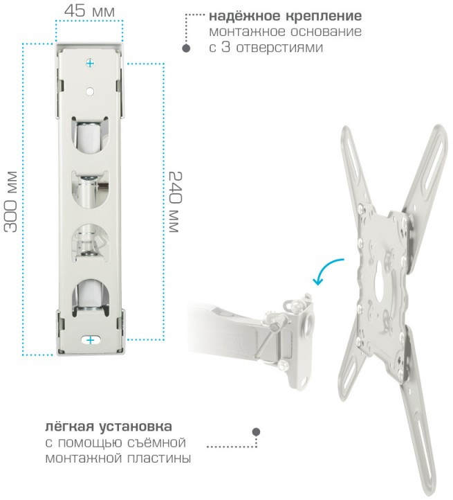 - Кронштейн подходит для большинства телевизоров популярных брендов, таких как Samsung, LG, Sony, Panasonic, Sharp, Toshiba, KIVI, Xiaomi Mi, SUPRA, Hyundai, Erisson, Horizont, JVC, Thomson, HAIER, BBK, Витязь, Веко, BQ, OZON, SkyLine, Pioneer, Philips, Rolsen, Harper, Hisense, Hitachi, Polarline, Prestigio и других
