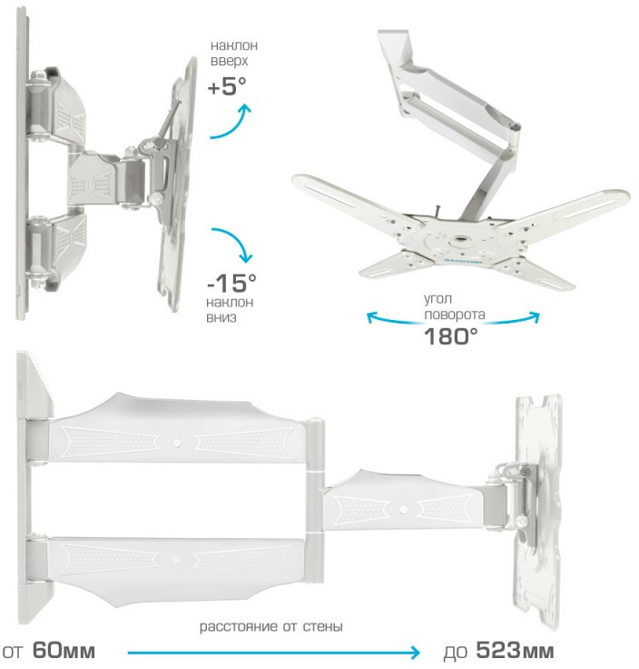 - Вращение экрана уникальная возможность вращения экрана на ±5° относительно стены