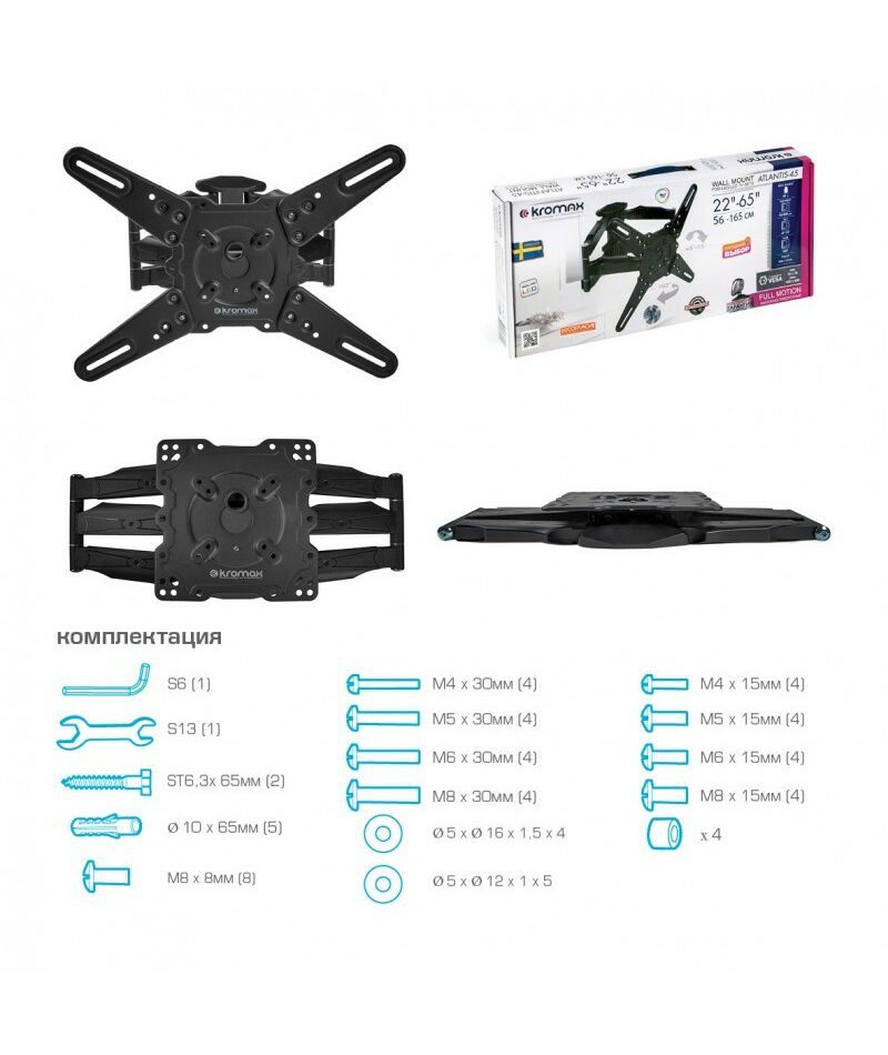 Кронштейн для ТВ Kromax ATLANTIS-45 grey 22"-65", VESA 400x400 мм [20217]