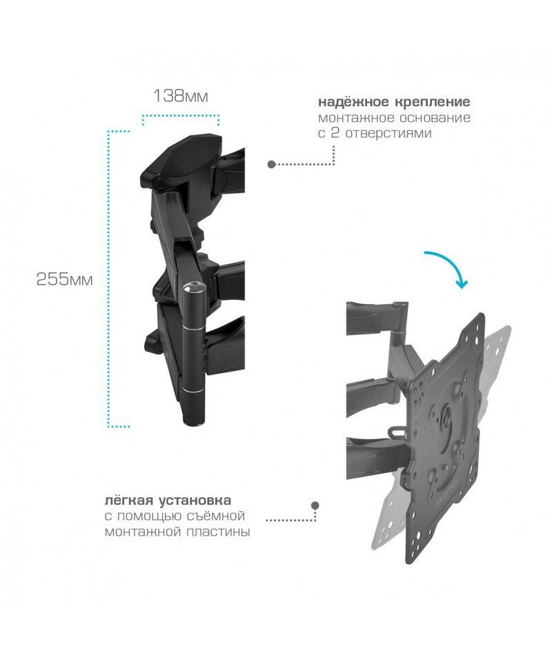 - Вращение экрана уникальная возможность вращения экрана на ±3° относительно стены