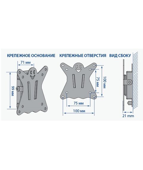 Фиксированный кронштейн для крепления к стене телевизоров и мониторов с не большой диагональю экрана. Высококачественная стальная конструкция обеспечит надежное и безопасное использование. Легко снимающаяся монтажная пластина облегчит процесс уборки.