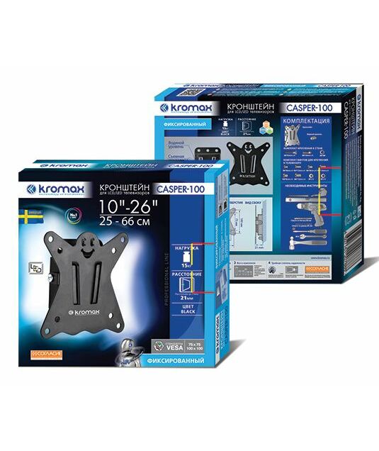Кронштейн для телевизора Kromax CASPER-100 черный 10"-32" макс.25кг настенный фиксированный [20167]