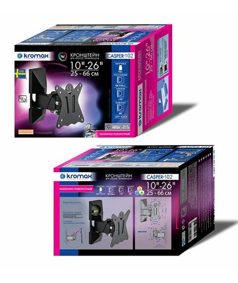 Кронштейн для телевизора Kromax CASPER-102 черный 10"-32" макс.25кг настенный поворот и наклон [20169]