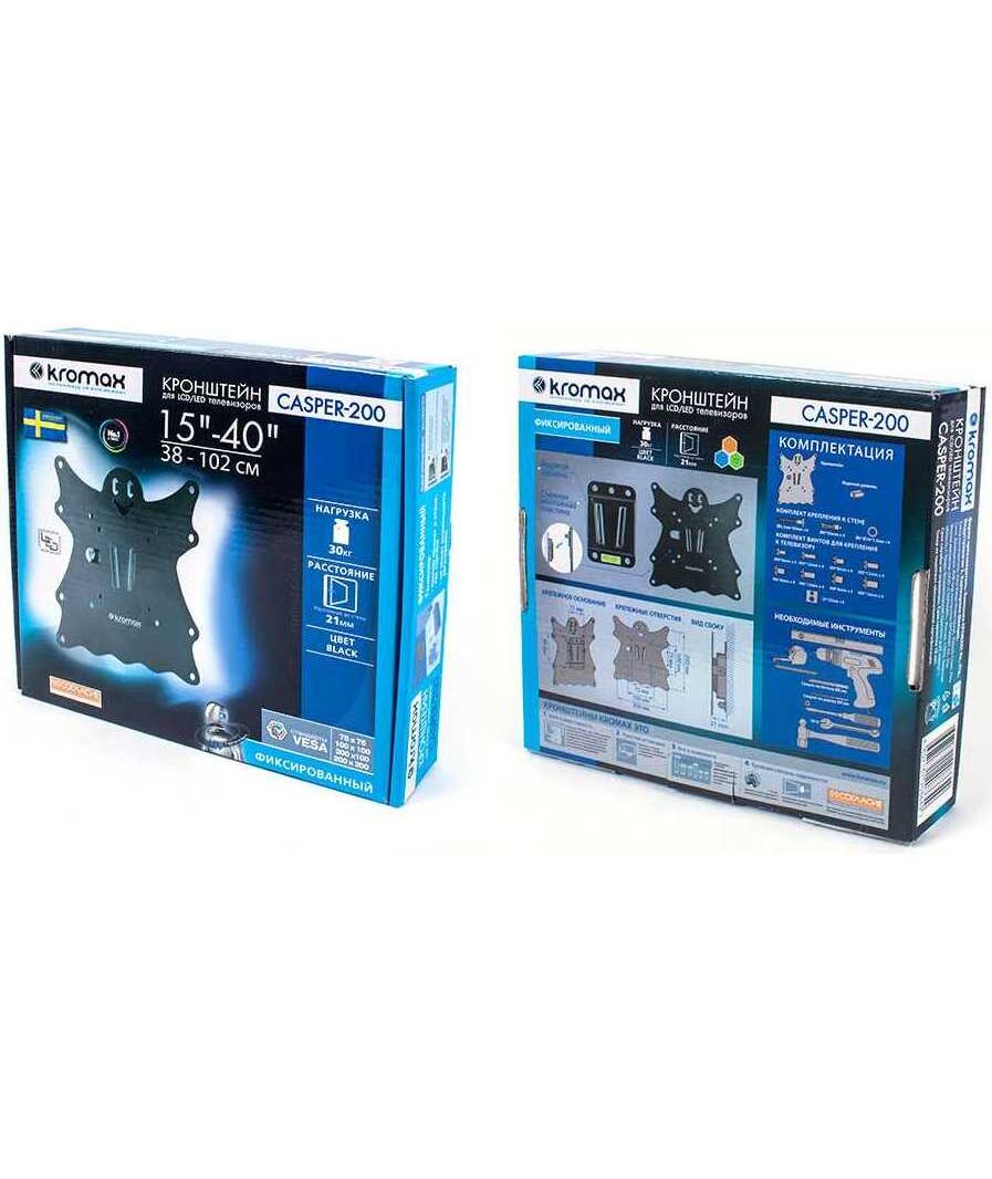 Крепление для ТВ и мониторов Kromax Casper-200 LED/LCD TV 15"-40", max 30 кг, настенный, 0 ст свободы, 21 мм, VESA 200x200 мм