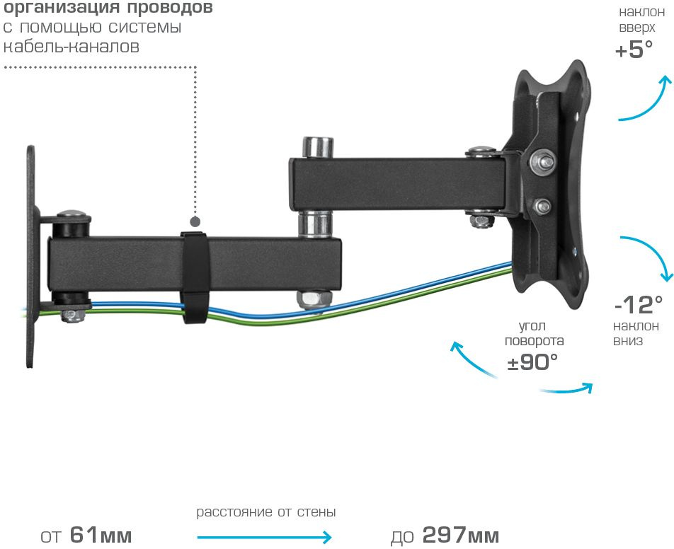 Кронштейн для телевизора Kromax CORBEL-3 черный 10"-32" макс.25кг настенный поворот и наклон [90463]