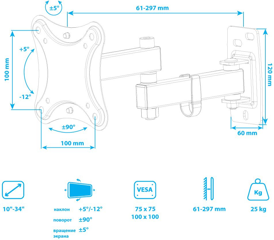 | Поддержка крепления VESA | 100x100, 75x75 |