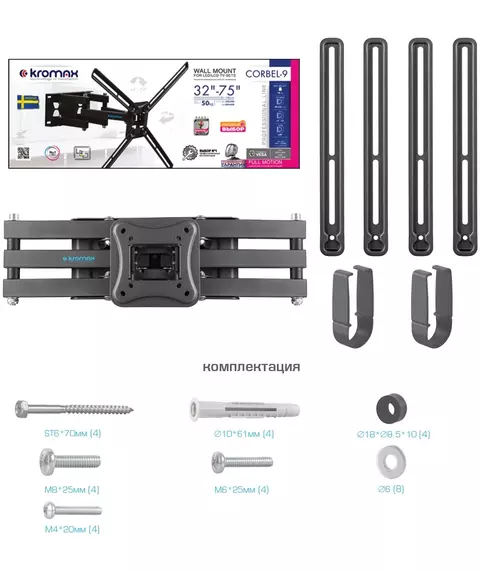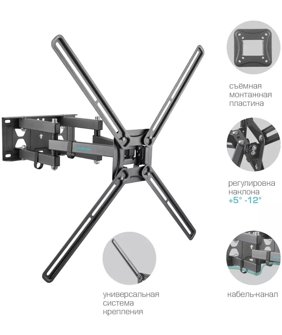 Кронштейн для телевизора Kromax CORBEL-9 титан 32"-75" макс.55кг настенный поворот и наклон [90593]