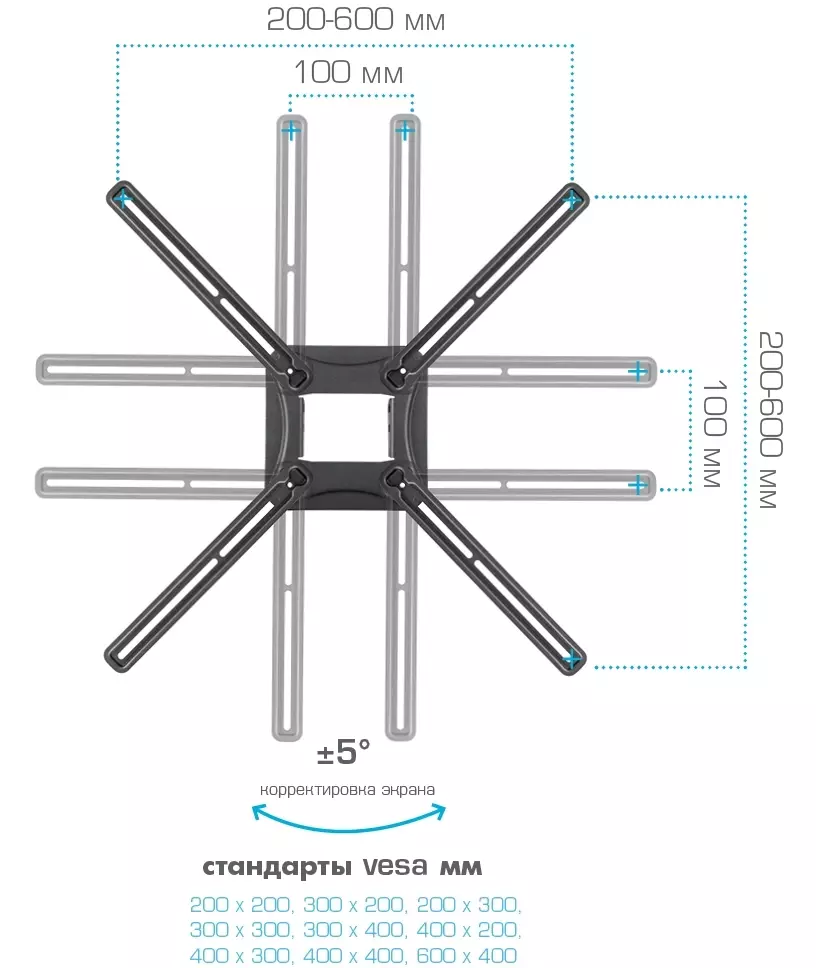| Поддержка крепления VESA | 200x200, 200x300, 300x200, 300x300, 300x400, 400x200, 400x300, 400x400, 600x400 |