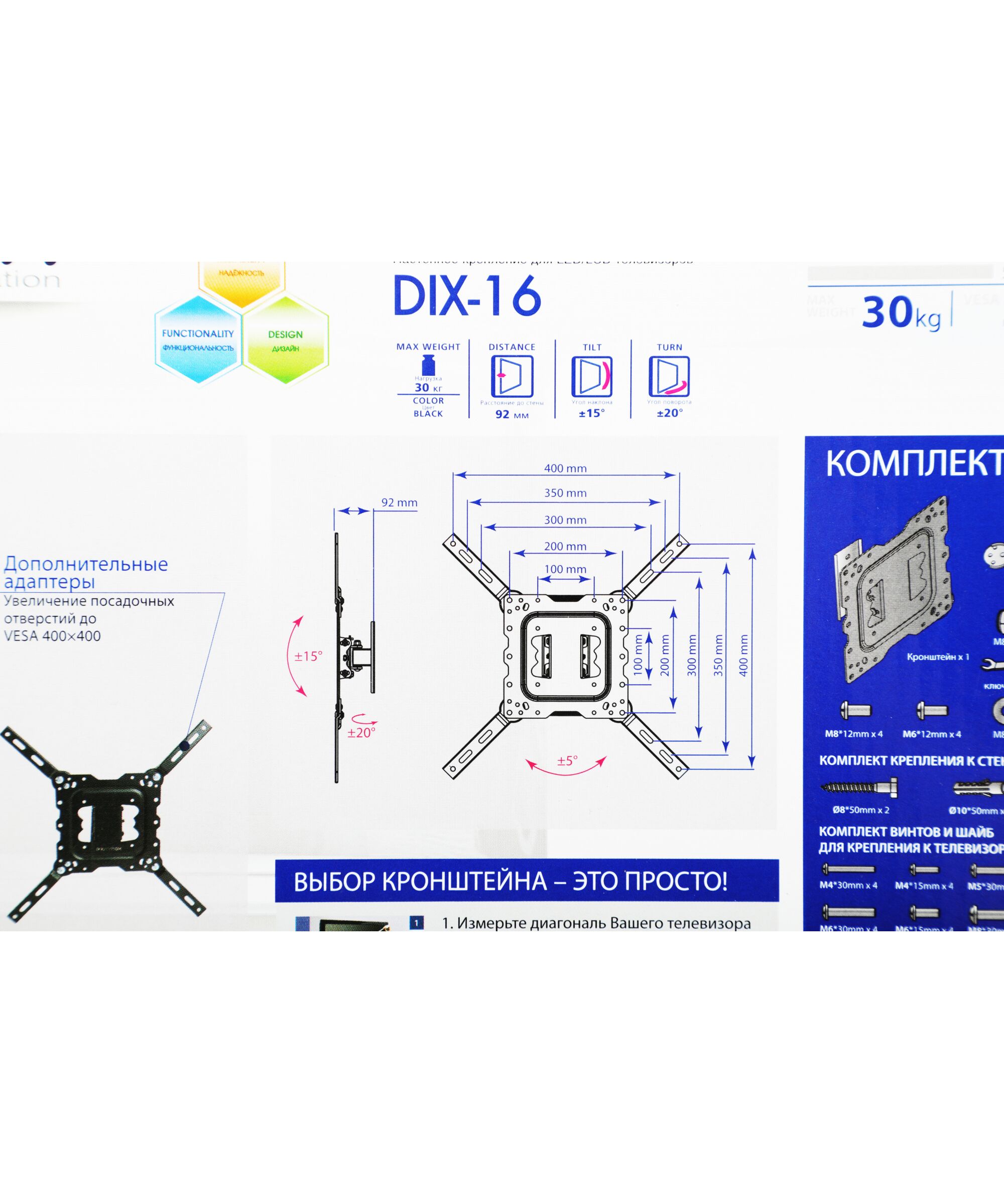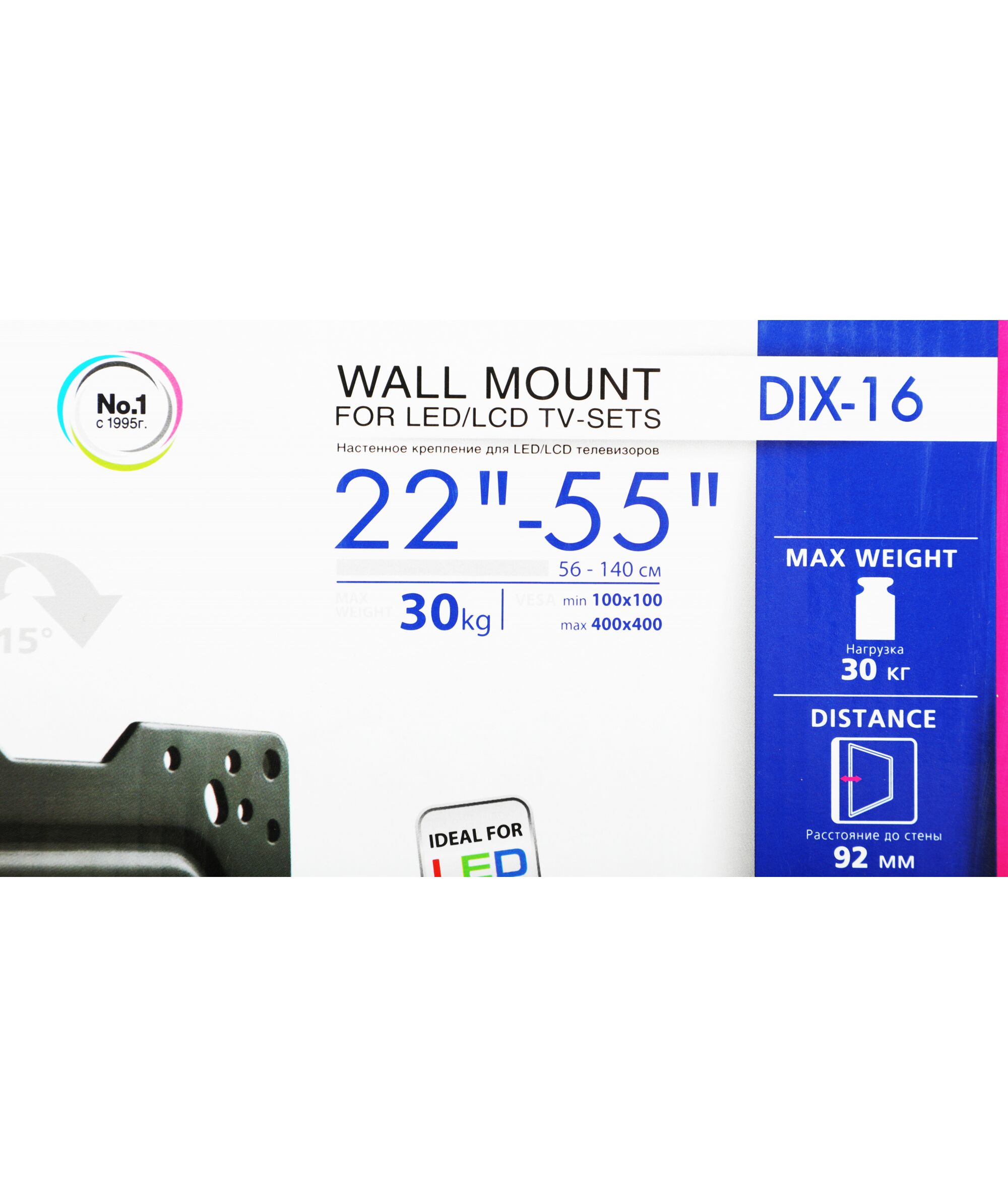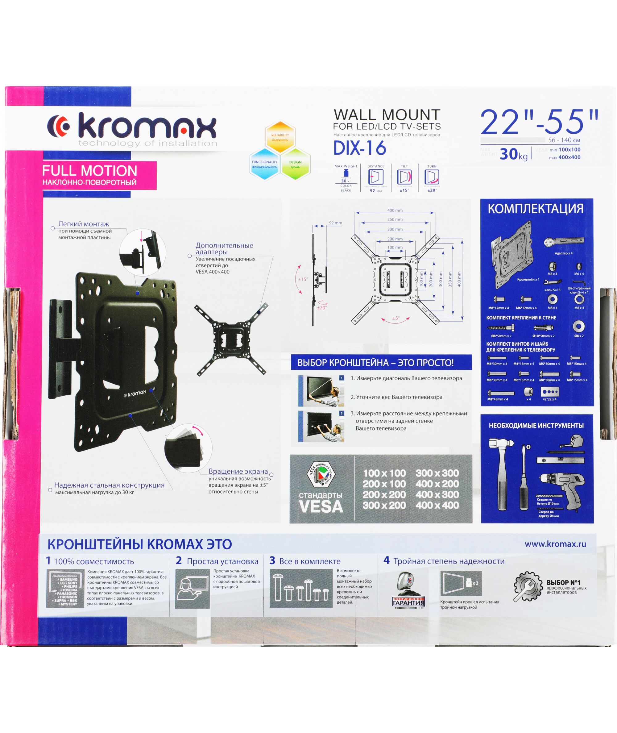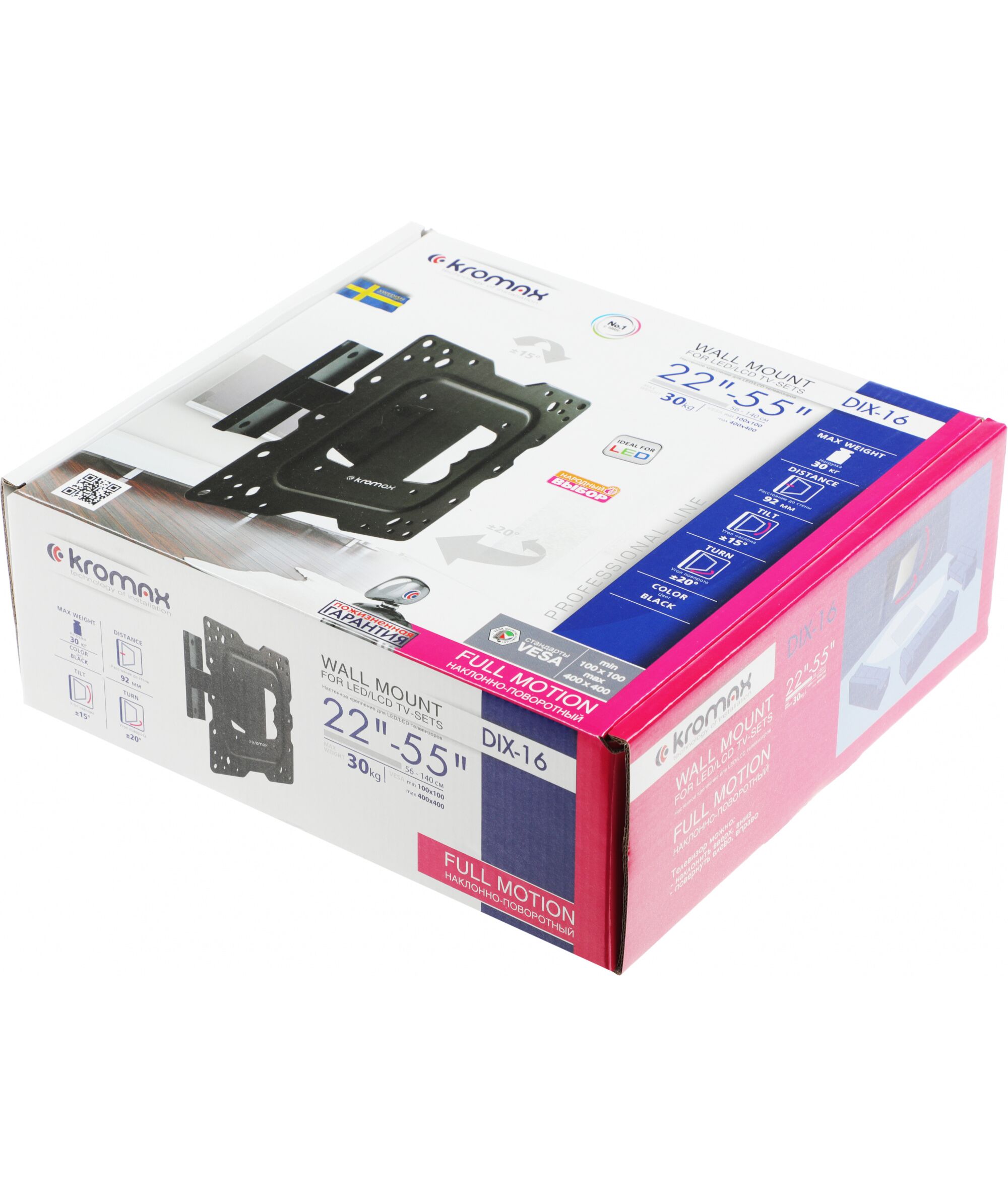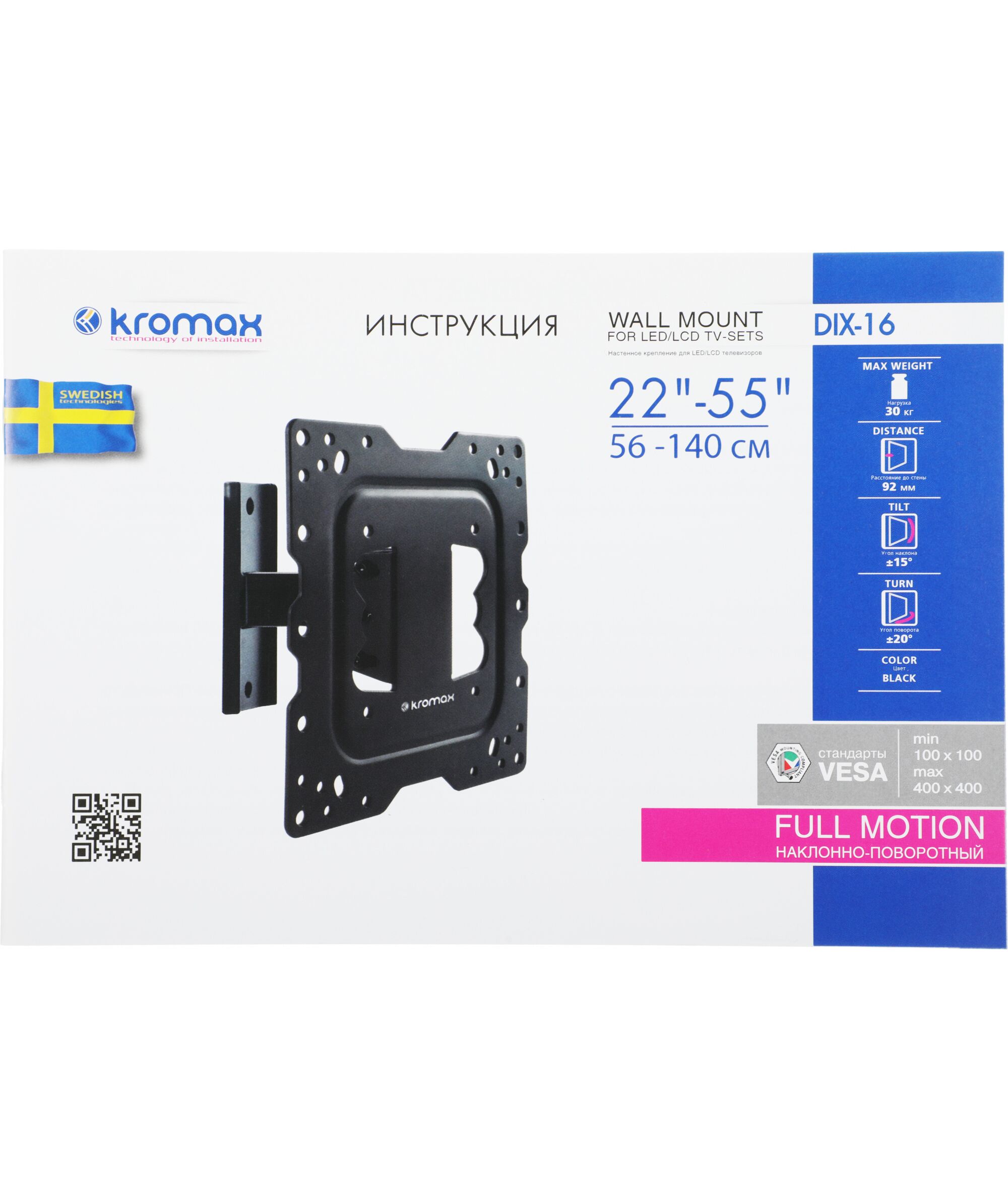 Кронштейн для телевизора Kromax DIX-16 черный 22"-55" макс.30кг настенный поворот и наклон [20204]