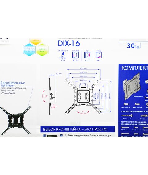 | Подходит для телевизоров c диагональю | 22", 24", 26", 28", 32", 37", 39", 40", 42", 46", 48", 50", 52", 55" |