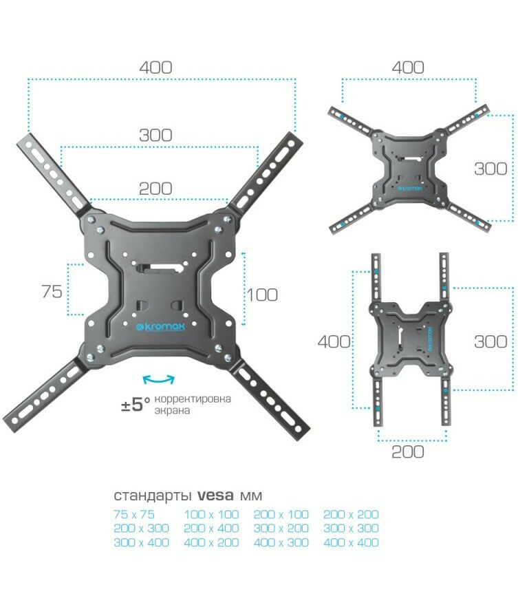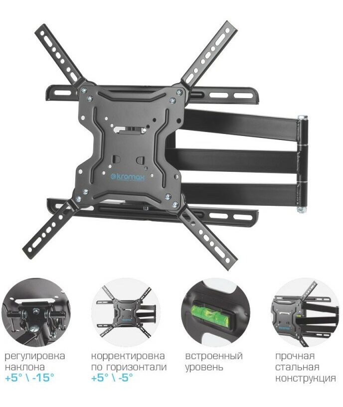 Кронштейн настенный для ТВ Kromax DIX-19 Black 22"-65", VESA 400x400 мм [20260]