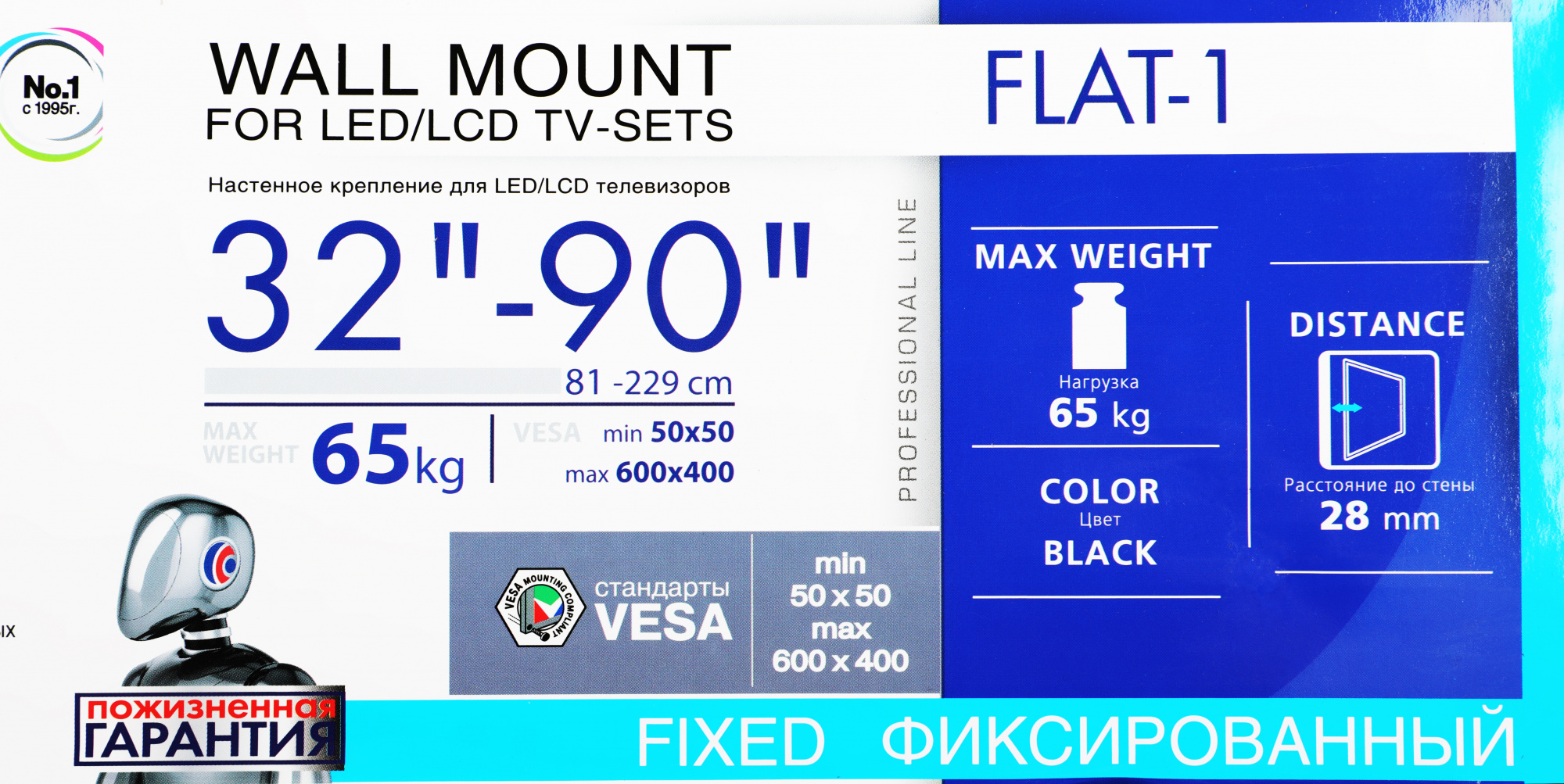 Кронштейн для телевизора Kromax FLAT-1 черный 32"-90" макс.65кг настенный фиксированный [26007]