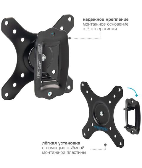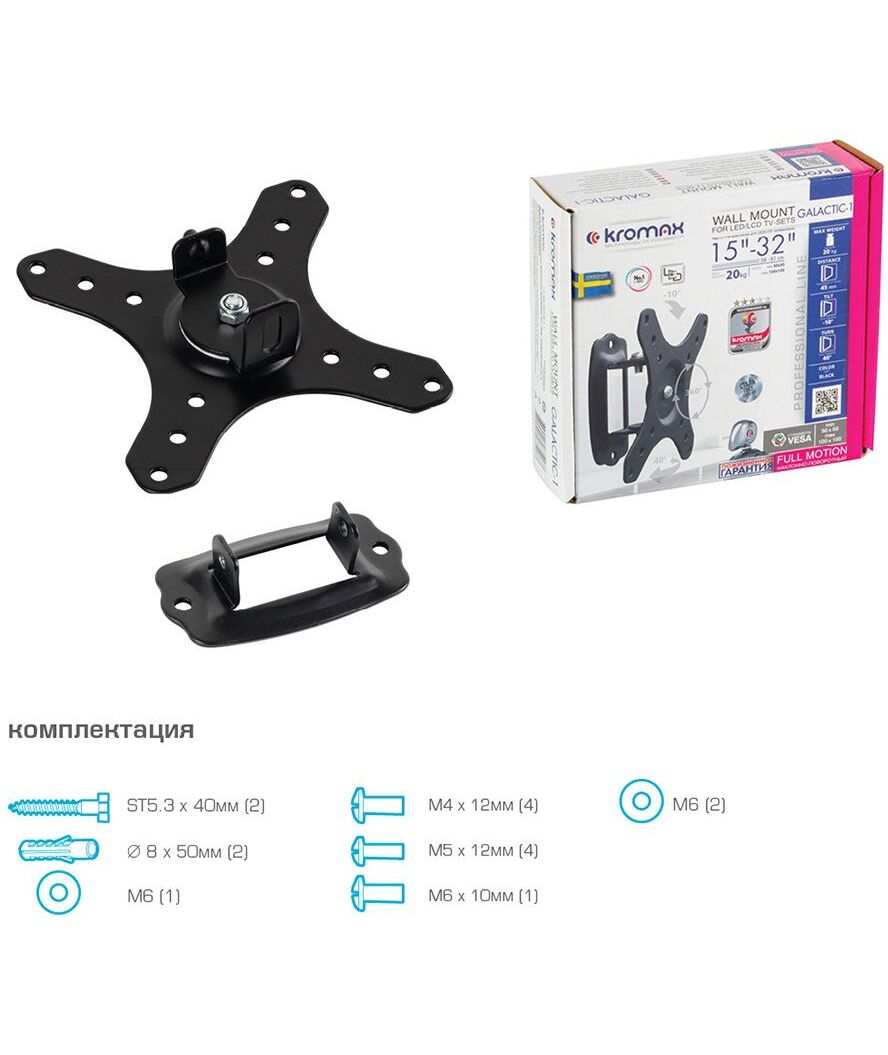 Кронштейн для телевизора Kromax GALACTIC-1 new черный 15"-32" макс.20кг настенный поворот и наклон [24035]