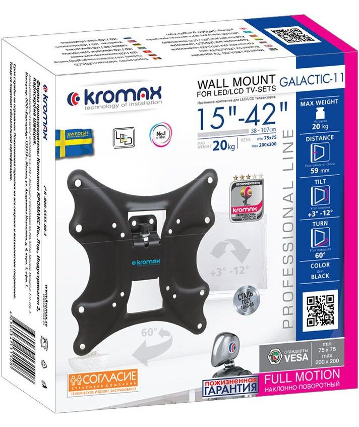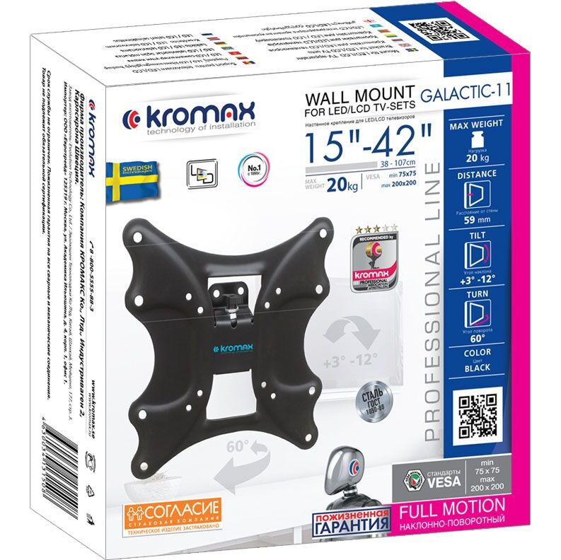 Кронштейн для телевизора Kromax GALACTIC-11 черный 15"-42" макс.20кг настенный поворот и наклон [24047]