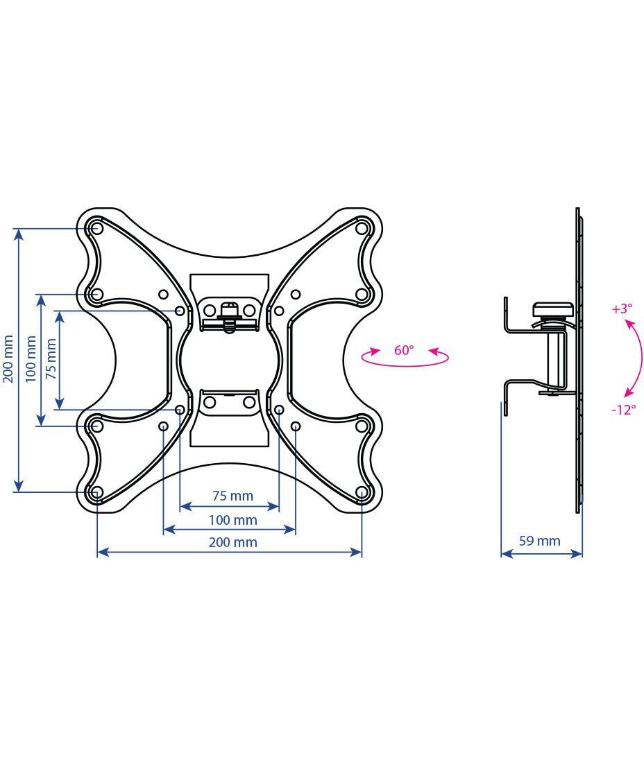Легкий монтаж при помощи съемной монтажной пластины. Надежная стальная конструкция. Универсальный телевизор на кронштейне можно наклонить, повернуть и сдвинуть к стене. Регулировка угла наклона без использования инструментов.